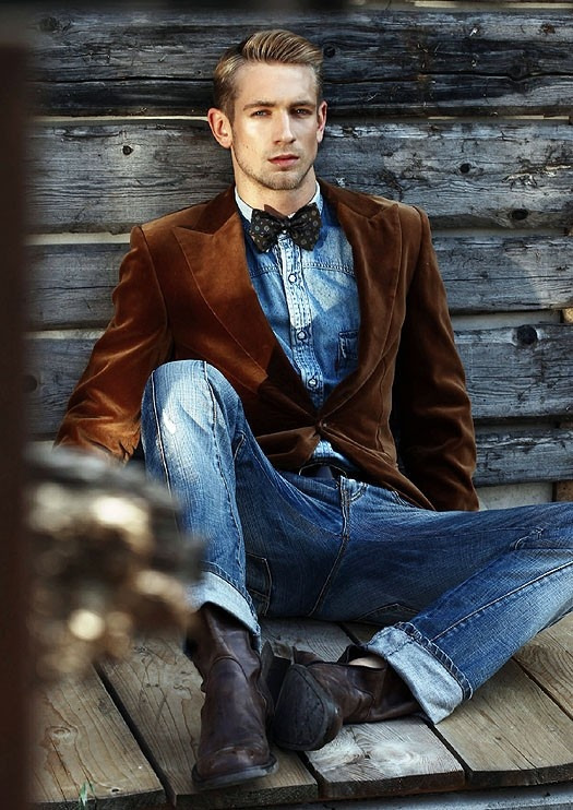 벨벳 재킷 특유의 드레시함이 부담스럽다면 같이 입는 아이템을 캐주얼로 고른다면 부담은 덜하고 재미는 배가 된다. 베이식 한티 셔츠에 루즈한 블루진(Jean)을 스타일링하면 고급스러운 캐주얼 스타일이 된다. 언밸런스 드레시한 스타일은 어려운 조합이지만 고급스러움과 캐주얼이 섞여 묘한 매력을 갖는다.