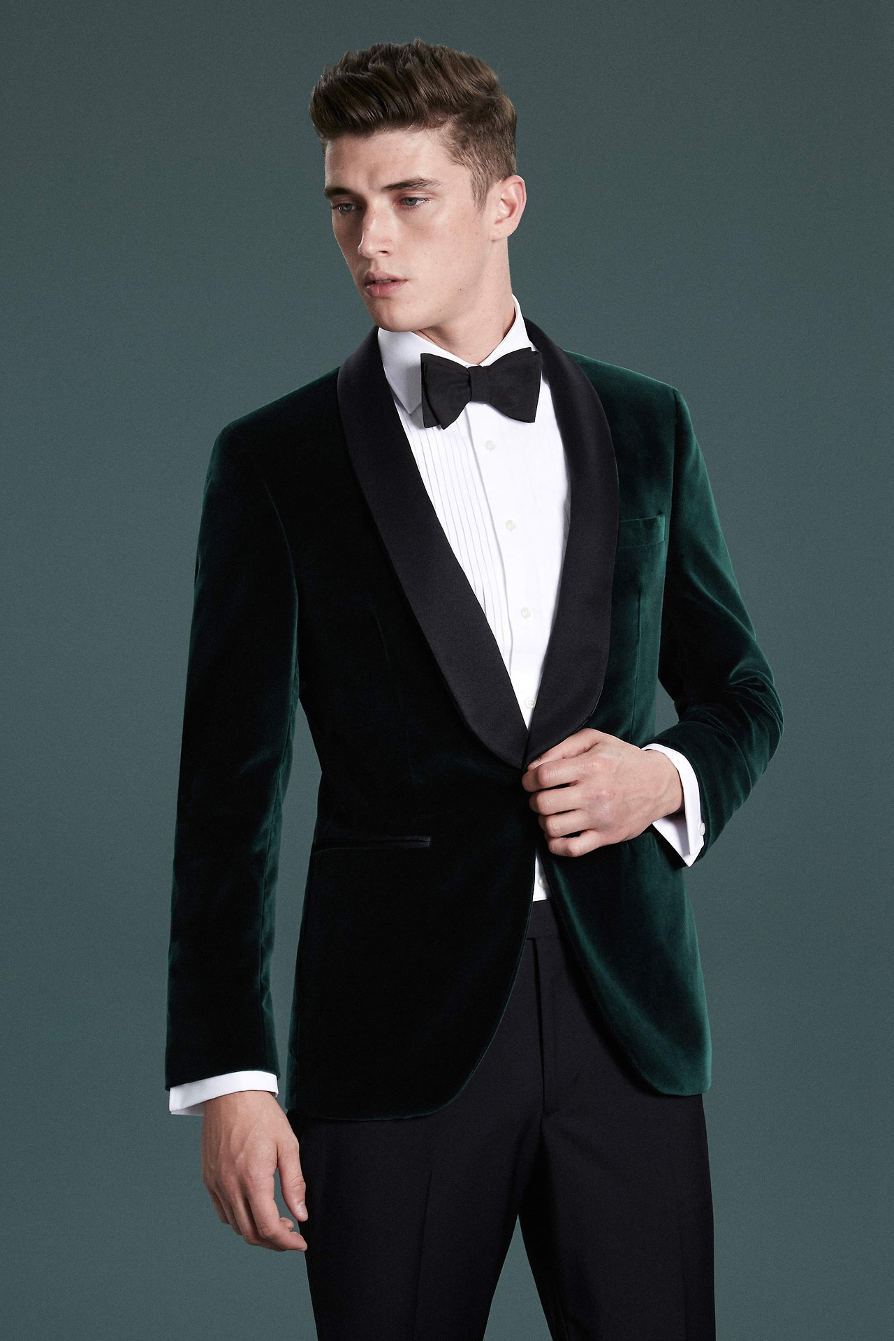 벨벳 재킷은 태생부터가 밤과 어울린다. 깊은 색감과 윤기가 흐르는 표면은 낮보다는 밤에 빛을 발한다. 차분한 디자인의 화이트 셔츠와 블랙 울 팬츠 그리고 블랙 스트레이트 팁 구두와 함께 한다면 타이까지 하지 않아도 충분하다. 타이가 없다면 파티에 적당히 어울리는 차림이면서도 유연한 느낌을 가질 수 있어서 보통의 자리에도 거리감 없이 어울릴 수 있다. 혹시나 시상식을 가는 길이라면 아니면 당신이 오늘 밤 주인공이라면 보우타이까지 아니더라도 블랙 타이를 해도 좋다. 드레스 업 (Dress up)을 제대로 보여줄 수 있을 것이다.
