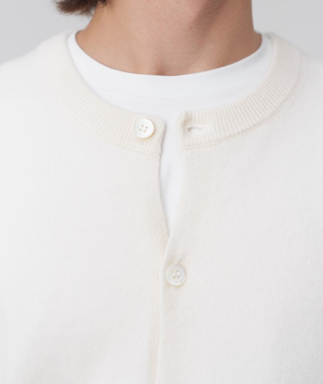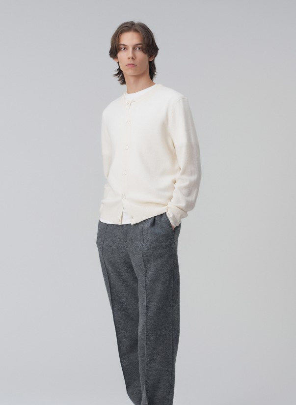 이 카디건을 처음 마주했을 때 가장 먼저 눈에 들어오는 것은 라운드 네크라인의 곡선입니다. 단정하면서도 부드럽고, 간결하지만 시선을 잡아끄는 완성된 형태를 지니고 있습니다. 제이리움이 추구하는 ‘중성적인 미학’은 이러한 디테일 속에서 드러납니다. 남성과 여성의 경계를 흐리며, 누구에게나 자연스럽게 어울리는 실루엣. 버튼을 모두 잠그면 단정한 니트 톱처럼, 하나쯤 풀면 여유로운 카디건으로 연출됩니다.