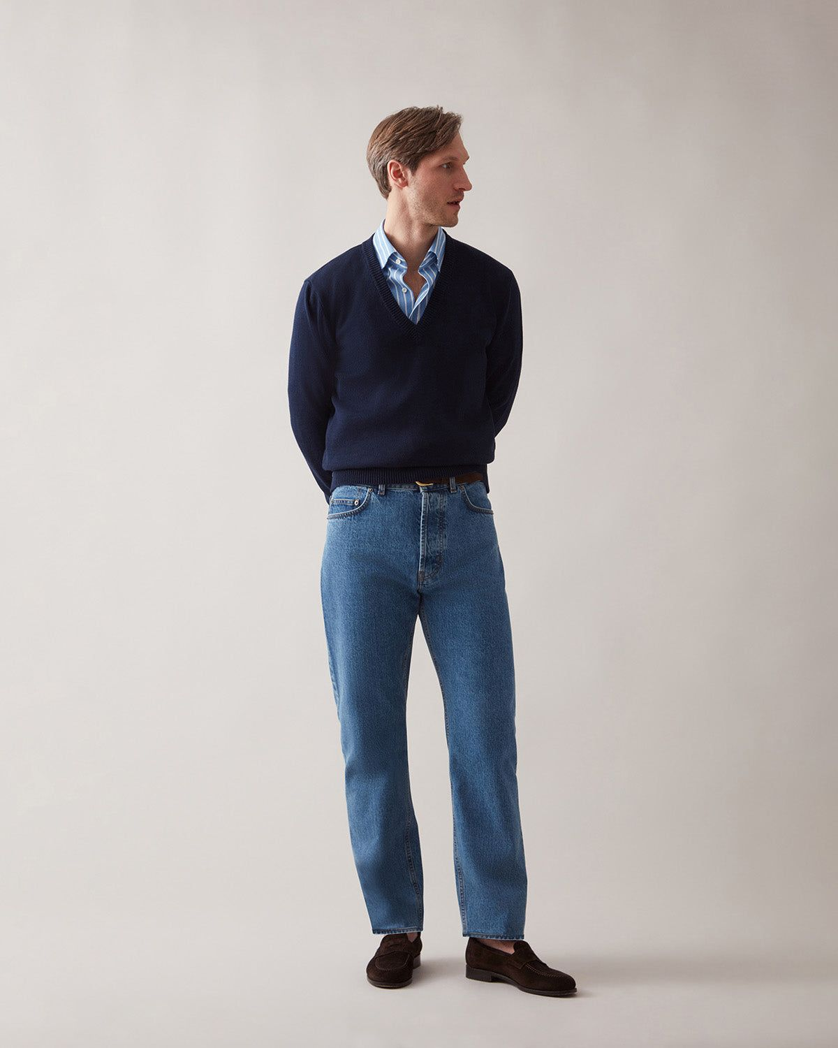 브이넥 니트가 가진 진정한 묘미는 이너웨어와의 연결, 즉 스타일링에서 나옵니다. 어떤 옷을 받쳐 입느냐에 따라 때로는 엄격한 비즈니스맨의 얼굴을, 때로는 주말 오후의 여유를 즐기는 산책자의 얼굴을 보여주기 때문입니다.