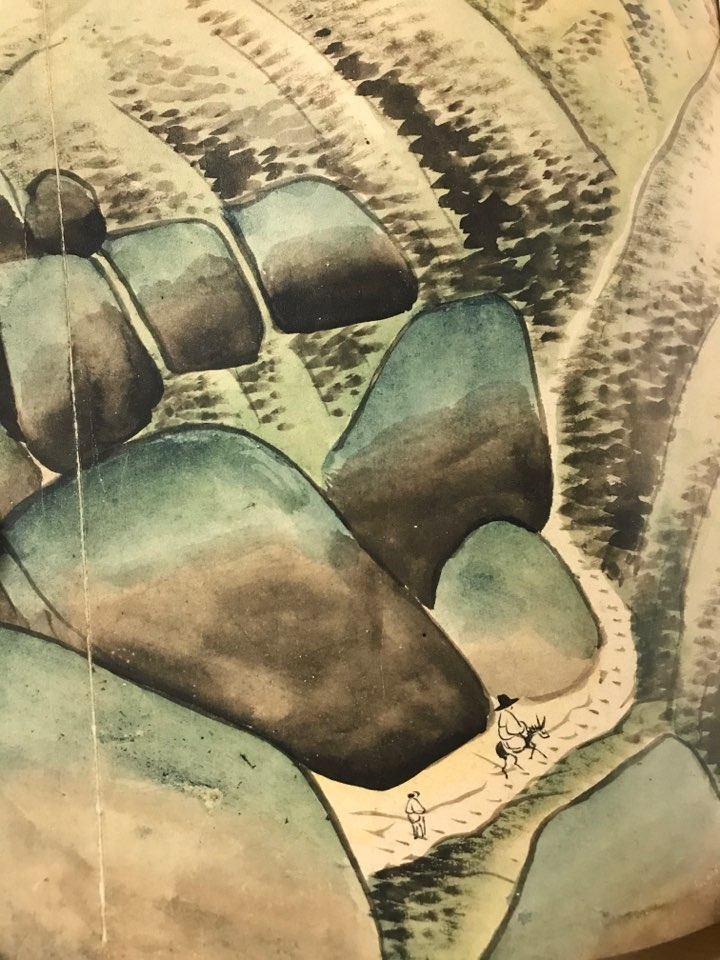 이들은 금강산을 유람하기 위해 산을 오르며 쉬기도 한다. 임진강으로 뱃놀이를 하는 사람들이 강가에서 기다리기도 한다. 일단 몽블랑에 올랐던 사람들도, 우리 옛 그림에 나온 산수에 머물렀던 사람들도 모두 대자연 앞에서는 귀엽게 그려졌다는 것이다. 산에 오른 목적은 제각기 다르지만 이렇게 드넓은 풍광이 펼쳐진 곳에선 다들 사람들이 당연하게도 매우 작고 귀여워지는 것 같다.