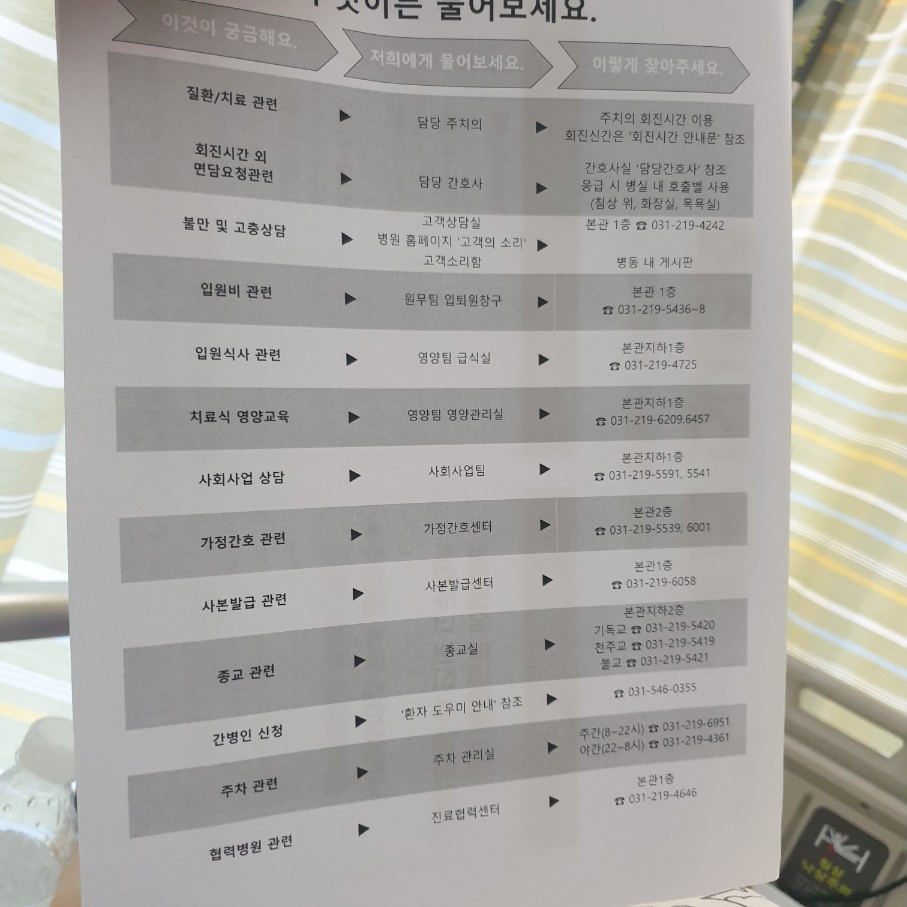 코로나19 때문에 면회는 안되고, 간호간병통합병동 특성상 보호자가 머물 수는 없다고 안내받는다.