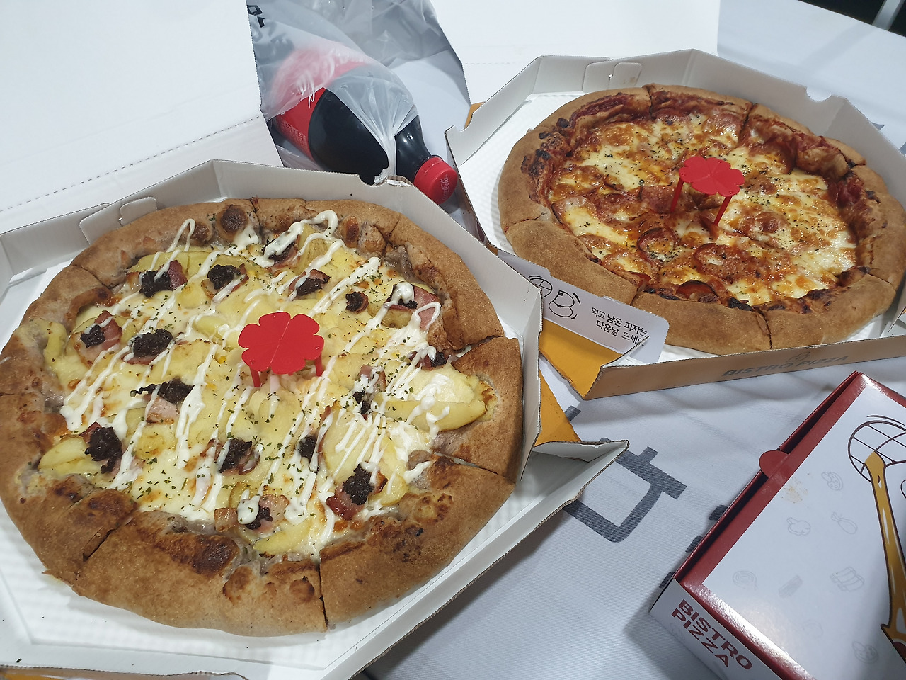 그렇게 피자 두 판과 스파게티 하나를 사다 주셨다.
