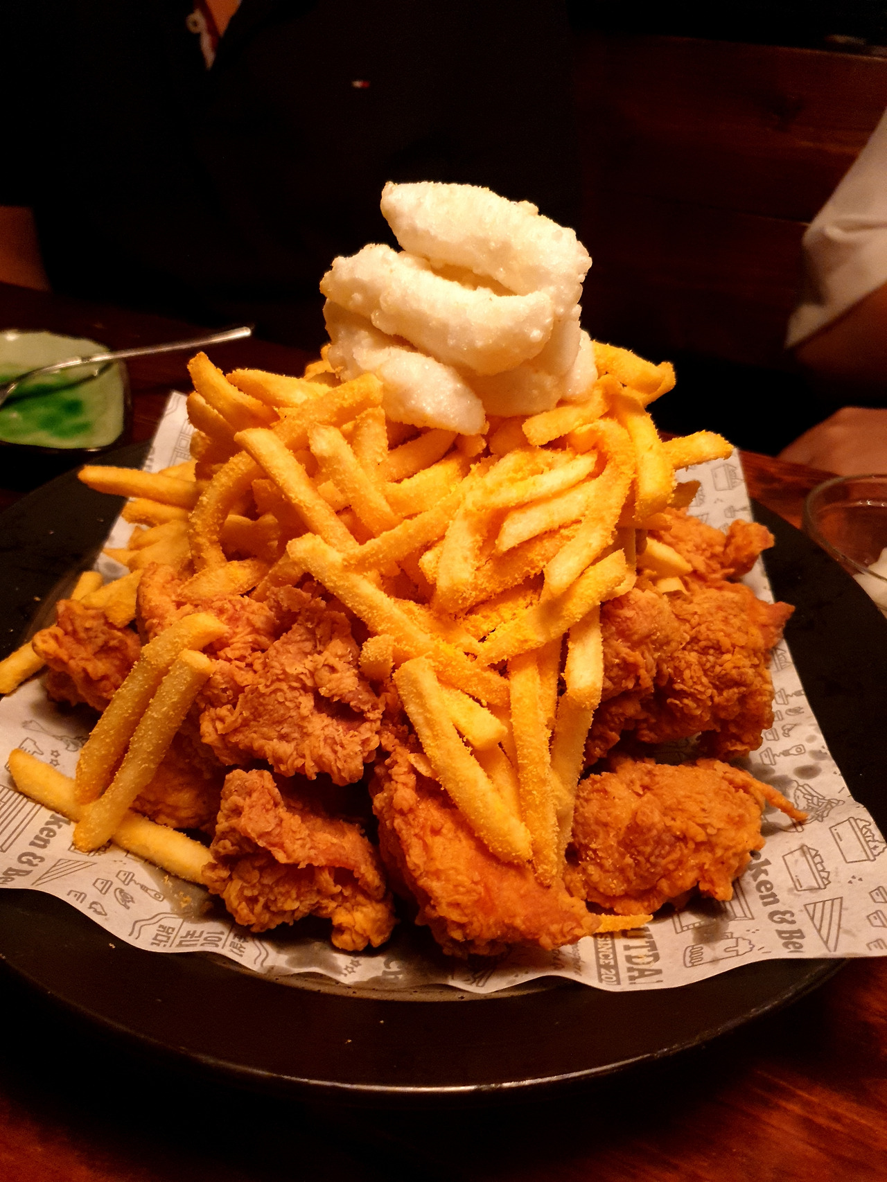 통닭 안에 찹쌀이 들어있던 메뉴였는데, 누룽지마냥 눌어붙어 있던 것도 있어 정말 맛있게 먹었다. 마늘쫑과 함께 먹는 그 맛의 조화가 생각보다 괜찮았고, 양념은 좀 달았지만 뭔들 맛있으면 그만이지 뭐.