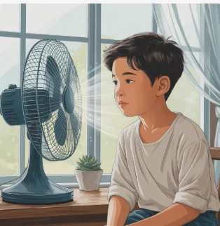 어떤 것들은 변하지 않는구나. 선풍기 앞의 순수한 즐거움처럼. 여름날의 시원한 바람처럼. 그리고 가족과 함께하는 소중한 순간처럼.