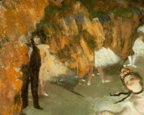 드가는 무대 뒤편의 이 후원자의 얼굴을 적나라하게 그리는 대신에 무대 장치로 교묘히 가렸다. 아마도 특정한 사람을 그려내기보다는 이러한 이면의 이야기를 풀어내고 싶었던 듯하다.