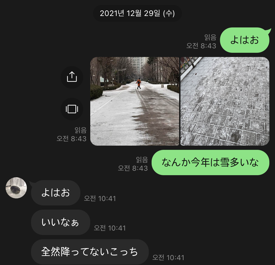 초겨울이 됐을 때 일본인 친구와 연락하며 그런 이야기를 했다. 난 눈을 좋아하는 데 서울은 눈이 잘 안 온다고. 작년에도 싸락눈 2번인가 온 게 전부라고.