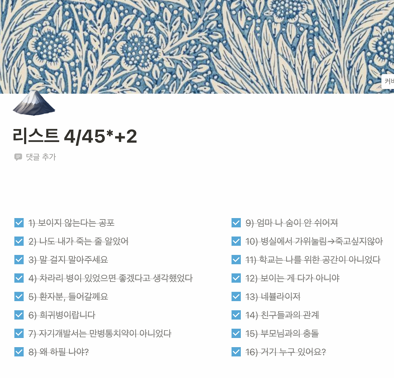 만들어둔 목차에서 하나씩 골라 쓰면 된다.