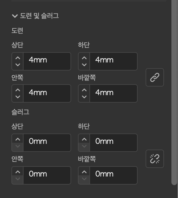 도련은 4mm로 해놓았다.