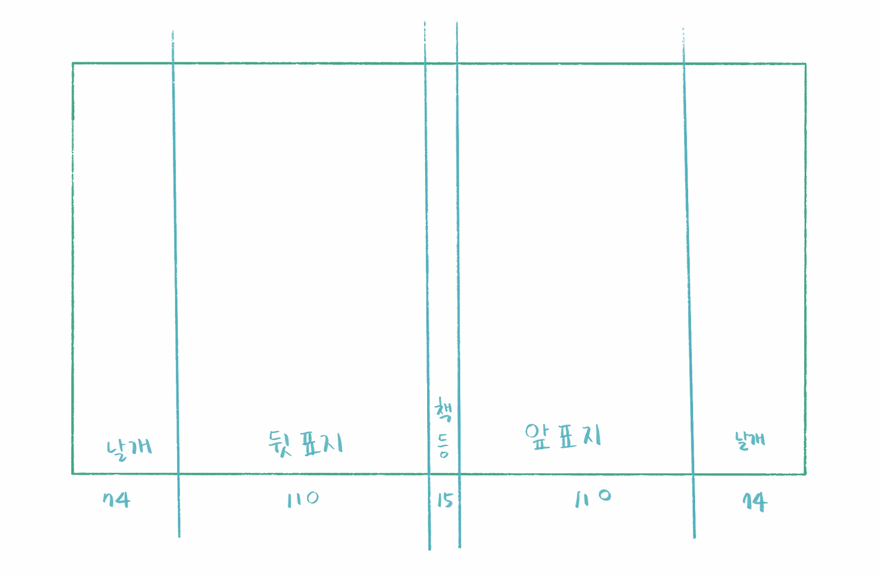 [앞표지+뒤표지+날개 X2+책등] 까지가 표지 길이다.