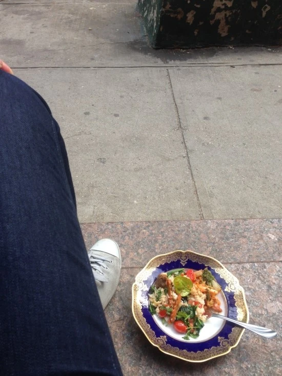 제일 먼저 집 근처 구세군(Salvation army)이 운영하는 구제 상점에 가 빈티지 접시를 사 오는 것으로 1번 문제를 해결했다. 밥이 그리울 때는 집 앞 차이니즈 테이크아웃 식당에서 밥을 사와 손에 잡히는 야채를 넣고 정체불명의 볶음밥을 만드는 것으로 2번과 3번 문제 해결을 '시도'했다. 그리고 좁고 볕이 들지 않는 집이 답답하게 느껴질 때는 접시를 들고나가 빌딩 앞 계단에 앉아 볶음밥을 먹었다. 가끔 지나가는 사람들을 놀라게 하는 민폐를 부리긴 했지만, 그런대로 4번 문제도 해결할 수 있었다.