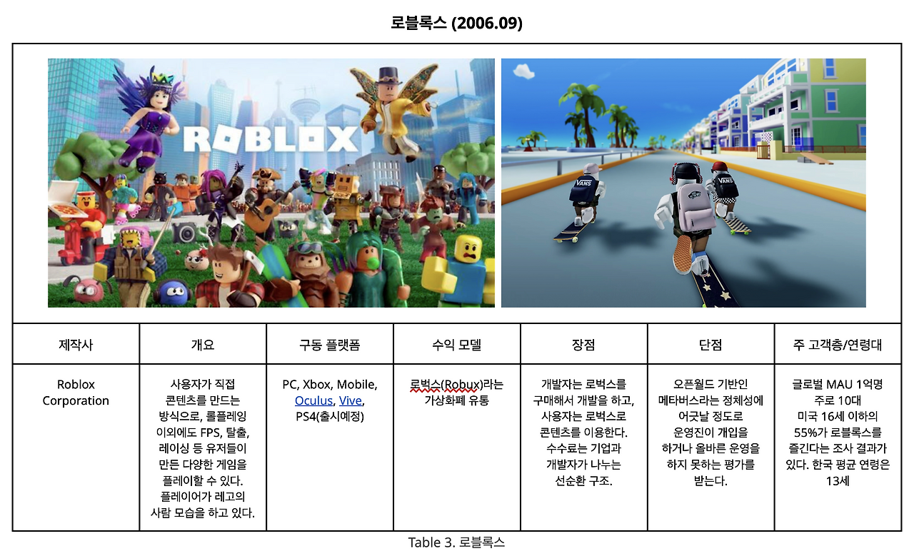 현재 메타버스 시장은 그 정의와 범위가 명확하지는 않다. 각 플랫폼은 자신들이 잘할 수 있는 방식으로 게임, 엔터테인먼트 같은 콘텐츠를 활용하여 사용자를 늘려 나가는 방식을 택하거나 다양한 콘텐츠를 제시하면서 점차 사용자의 니즈에 맞춰 나가는 방식을 택하고 있다. 수업, 근무와 같은 특정한 목적을 가지고 서비스하고 있는 플랫폼도 있다. 각자 다른 형태를 취하지만 공통적으로 10대 에서 20대 까지를 주 타겟으로 설정하고 있다. 메타버스 환경에 가장 빠르게 적응하면서 미래의 소비 계층을 사로잡는데 집중하고 있는 것이다. 그들 또한 현실 세계와 같은 다양한 제약 없이 끊임없이 창작 욕구를 펼칠 수 있는 점에 매료되어 메타버스에 열광하고 있다.