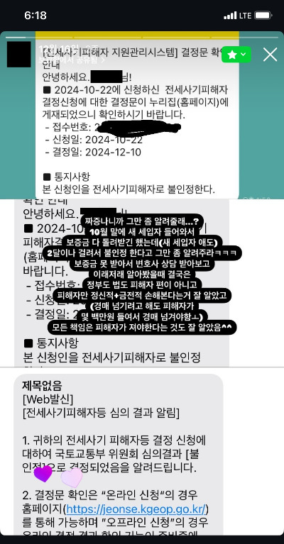 다 잘 마무리 된 후 돌이켜보면 나 자신 외에 정부를 포함한 그 누구도 나의 편은 아니었다는 생각이 들었다. 혹시나 싶어 신청했던 국토부 전세사기 피해자 신청에 대한 결과는 모든 것이 마무리 된 후 느즈막이 나를 찾아왔는데 이 문제 해결에 아무 것도 도와준 것도 없으면서 너는 피해자가 아니라고 굳이 굳이 여러번 나에게 알려주었다.