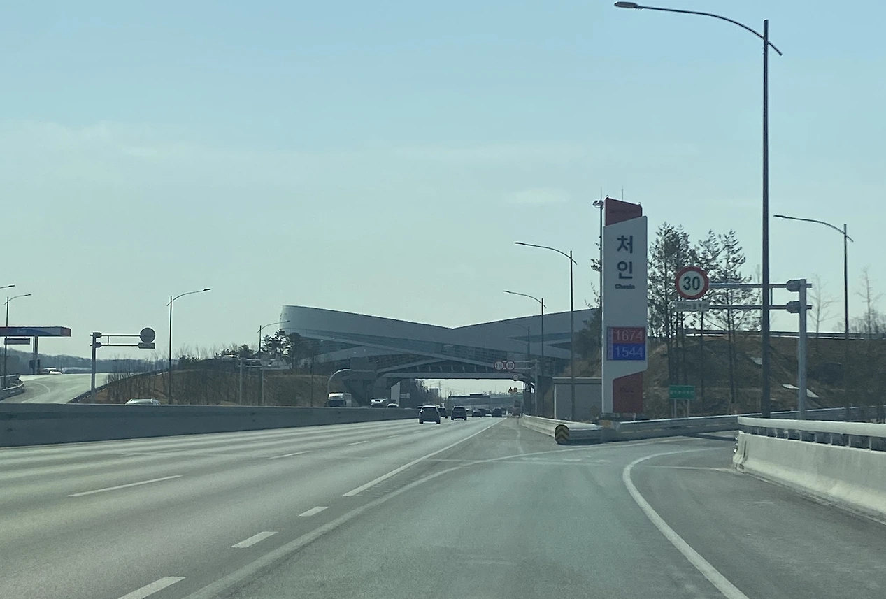 처인휴게소라고 올해 1월 1일에 개장한 새 휴게소인데, 도로 위에 건물이 떠있는 것으로 화제가 되었어서 구경 겸 휴식차 휴게소에 들르기로 했다.