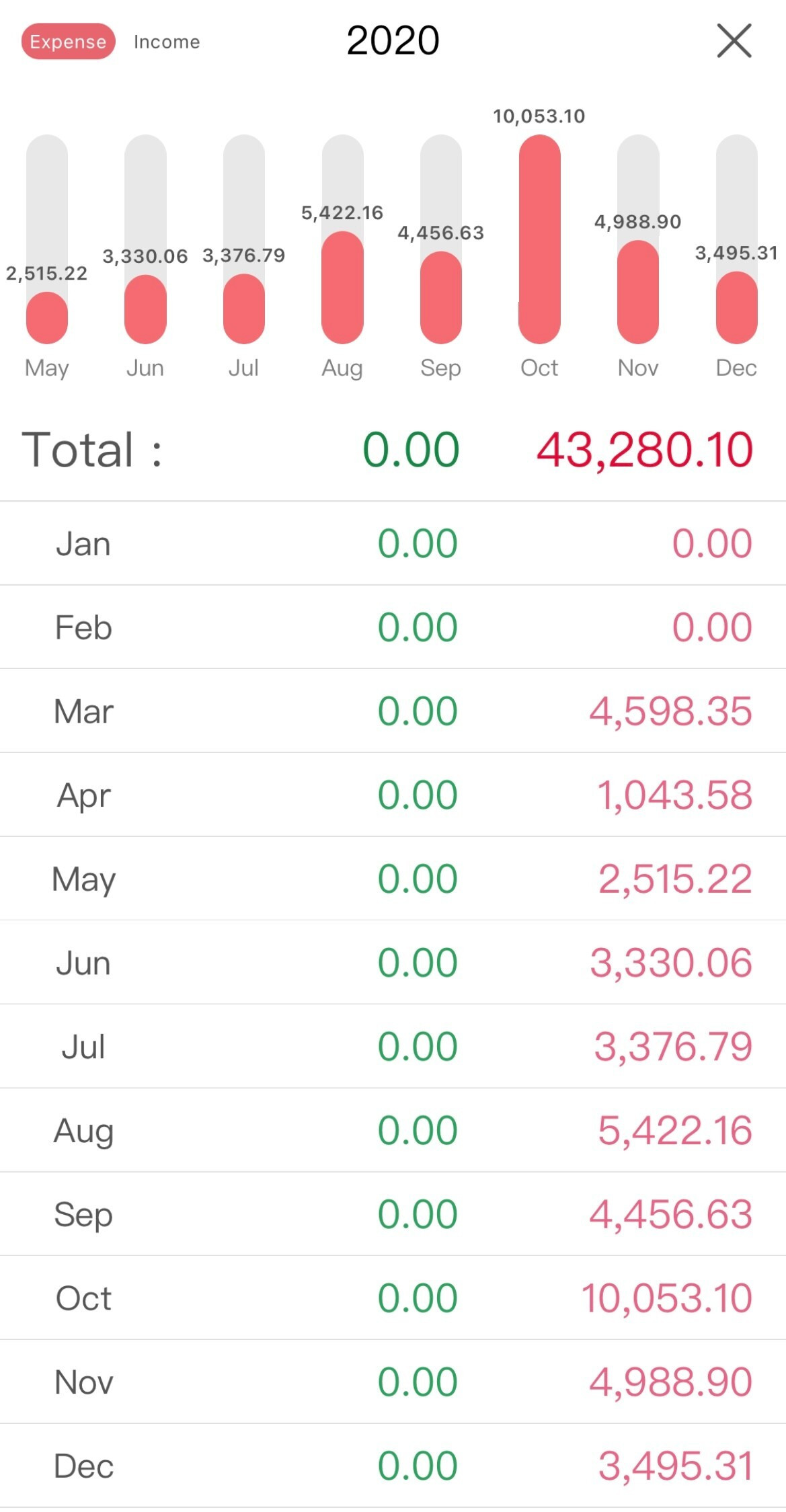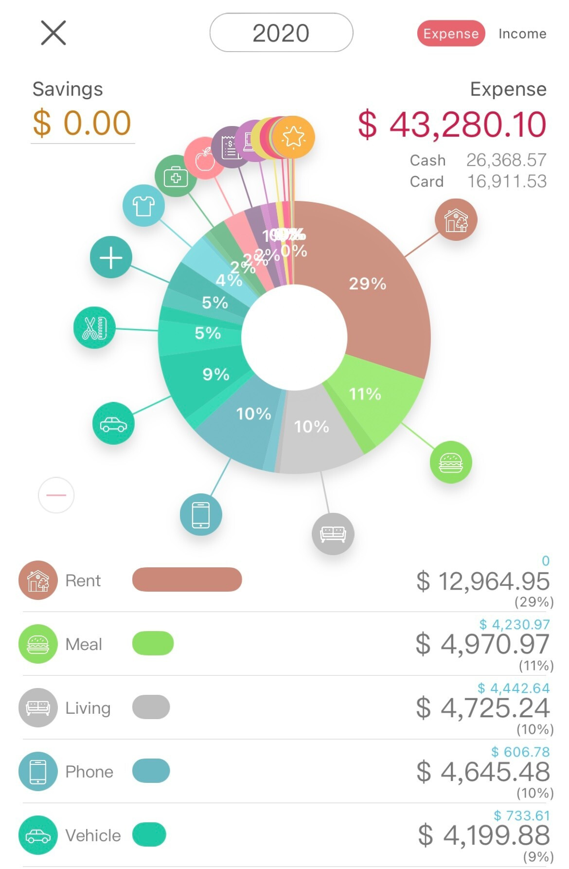 2020년 총지출액은 43,280불, 원화로 약 4천만 원을 썼다.