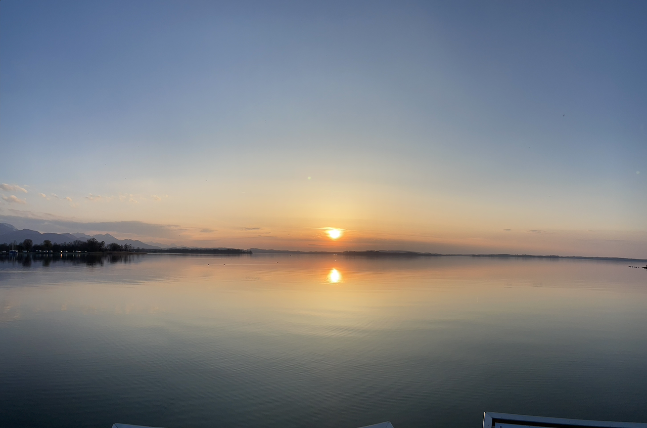 킴제가 보이는 김에 잠시 차를 세우고 호숫가를 걸었다. 같은 주인 바이에른에 있지만 당일치기로 가볍게 다녀오기엔 거리도 있고 차도 막히는 길이라 우리가 언제 또 노을 녘에 이곳에 오겠냐며. 봐둔 비치 바(ㅋㅋ)를 찾아서 가보았지만 아직 날이 따뜻해지지 않아서 모든 비치 바와 레스토랑은 닫혀 있었다. 겨우 열려있던 호숫가 매점에 들러 커피를 마시고, 노을 지는 경치를 보며 사진도 찍었다. 이 정도면 에너지 충전. 다시 출발이다.