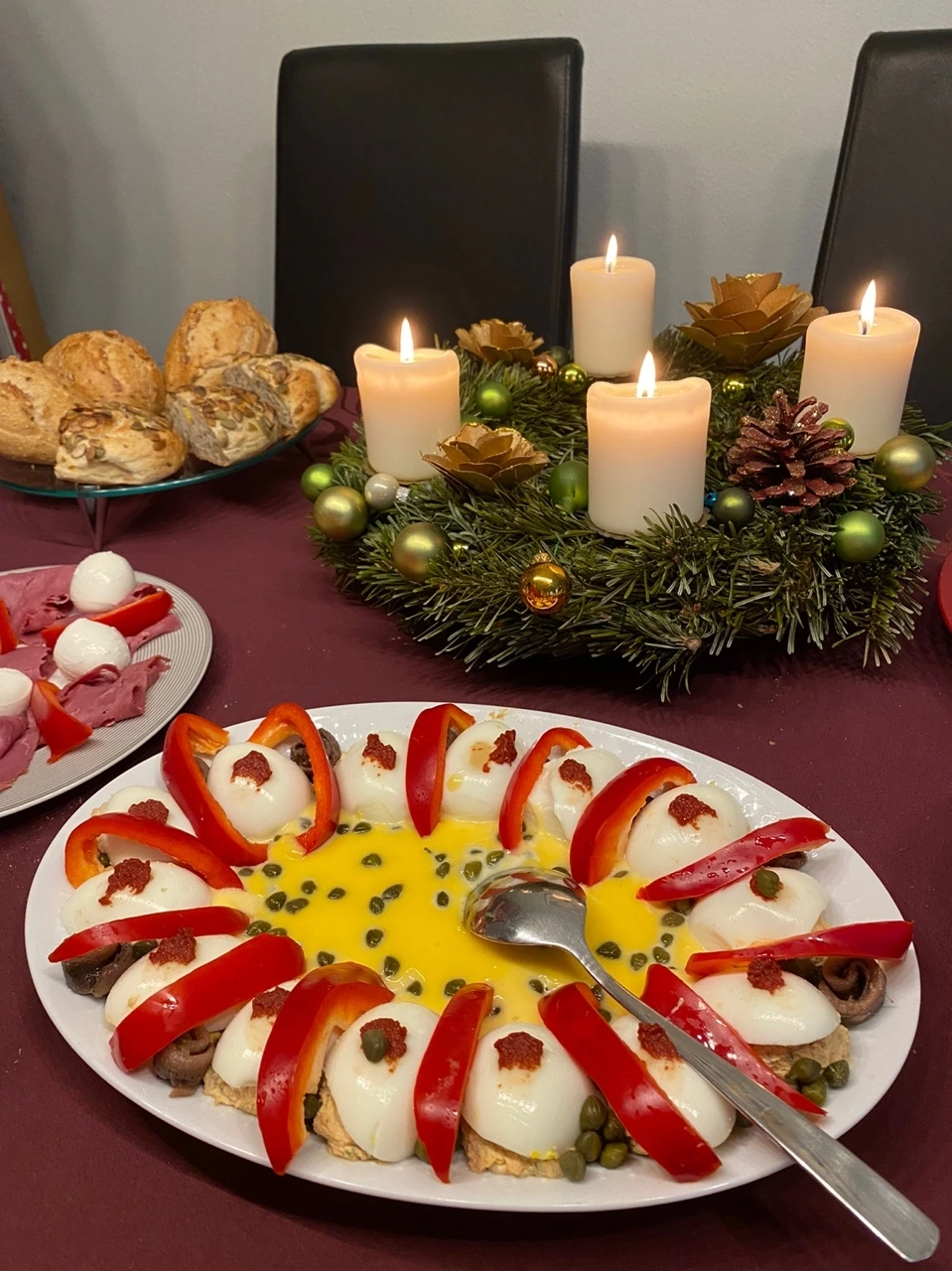 크리스마스 아침 식사는 매번 같다. 루마니아 음식인 Ovă Umplute, 다양한 파테로 속을 채운 삶은 계란이다. 파낸 노른자로는 마요네즈 같은 소스를 만들어 함께 먹는다. 이번에는 케이퍼와 함께 말아놓은 정어리도 같이 먹었다. Ovă Umplute는 크리스마스 음식이라기보다는 특별한 날에 먹는 손이 좀 많이 가는 음식으로 남편의 설명에 따르면 잡채와 비슷한 위치의 음식이라고 한다.
