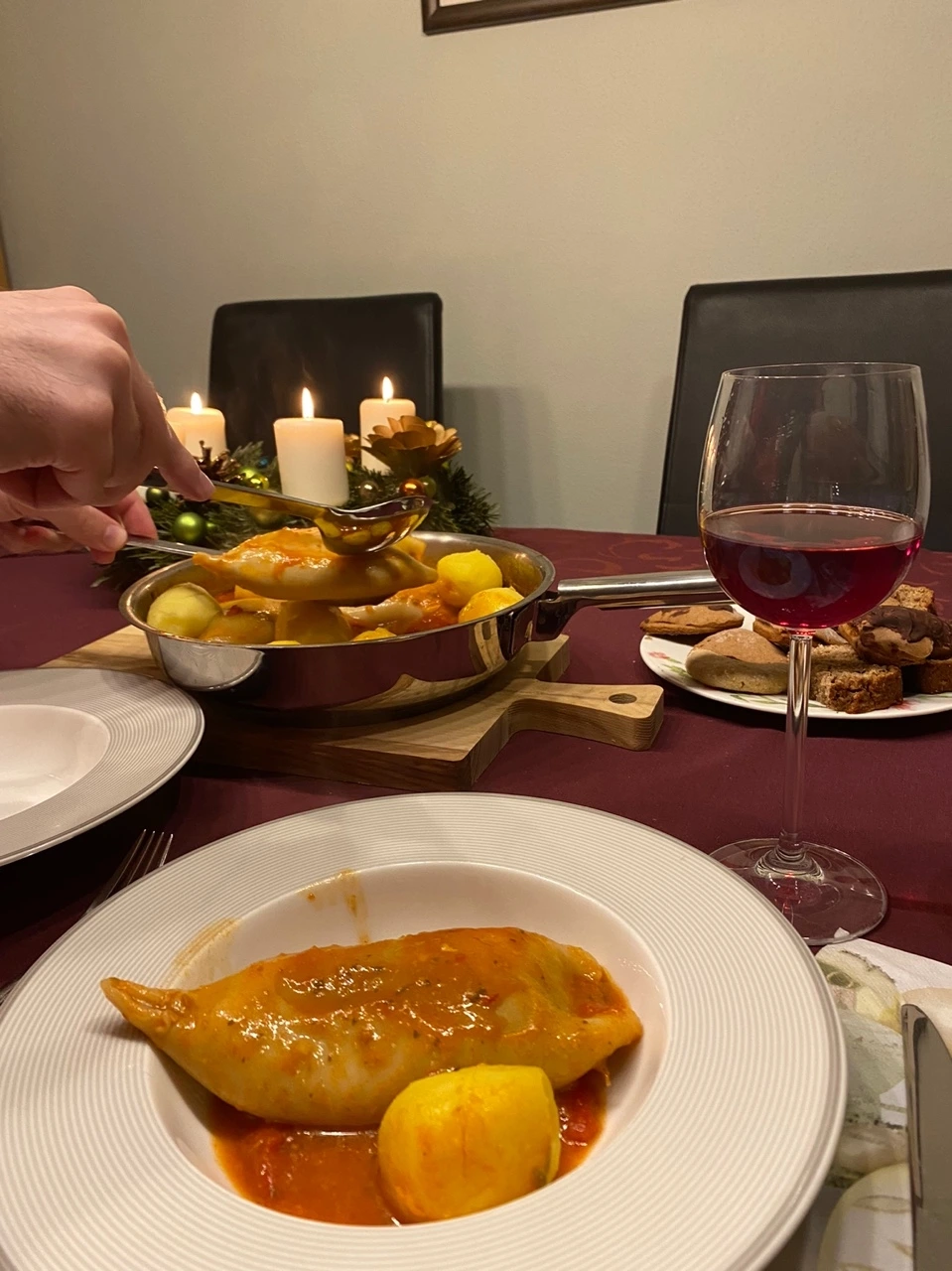 이번 크리스마스이브 저녁에는 오징어순대와 비슷한 음식을 토마토와 정어리, 케이퍼 등을 곁들여 이탈리아식 소스로 만드셨다. 남편의 최애 한국 음식이 속초 오징어순대이기 때문에 이분은 유난히 더 신이 났다.