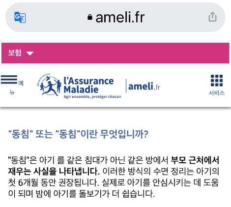 프랑스 국민의료보험 기관인 아멜리 사이트에서 아기들의 수면 훈련에 대한 내용을 보았다.