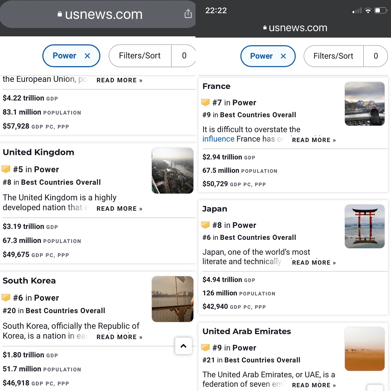 미국의 US 뉴스에서 발표한 올해 전 세계 국력순위에서 우리나라는 프랑스를 제치고 6위에 올랐다.