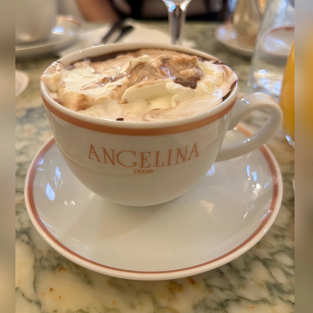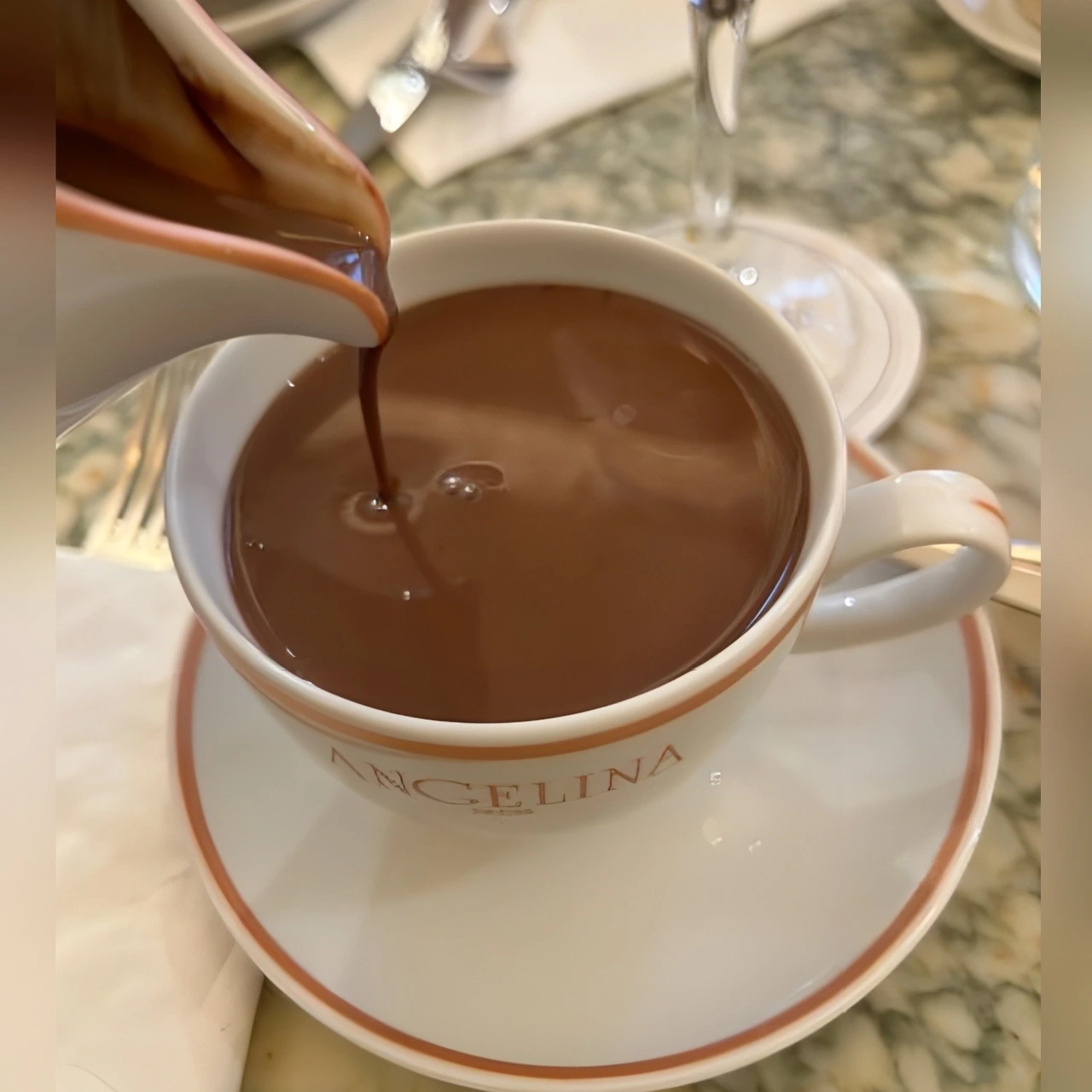 사람의 입맛이 모두 다 다르지만 공통적으로 안젤리나 카페에서 맛있다고 인정하는 것 중 하나는 바로 핫초코- 쇼콜라 쇼다. 보통 관광객들이 많이 가는 곳은 현지인들이 안 가기 마련인데 안젤리나 핫초코만큼은 까다로운 파리지앵들도 엄지 척을 하는 곳이다.