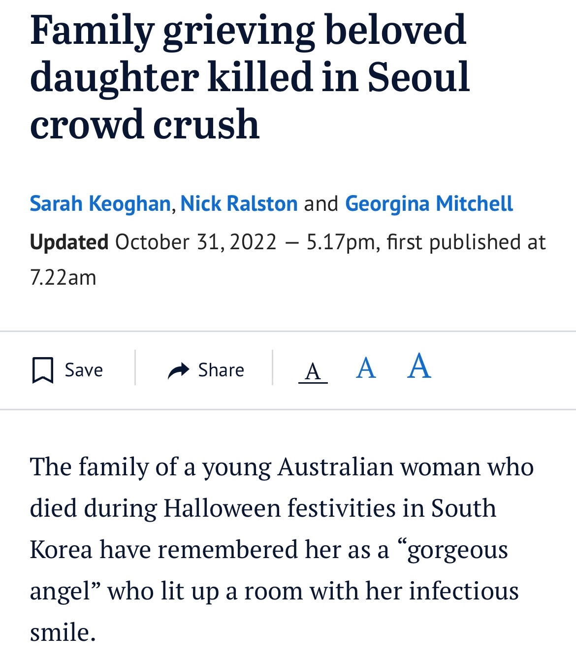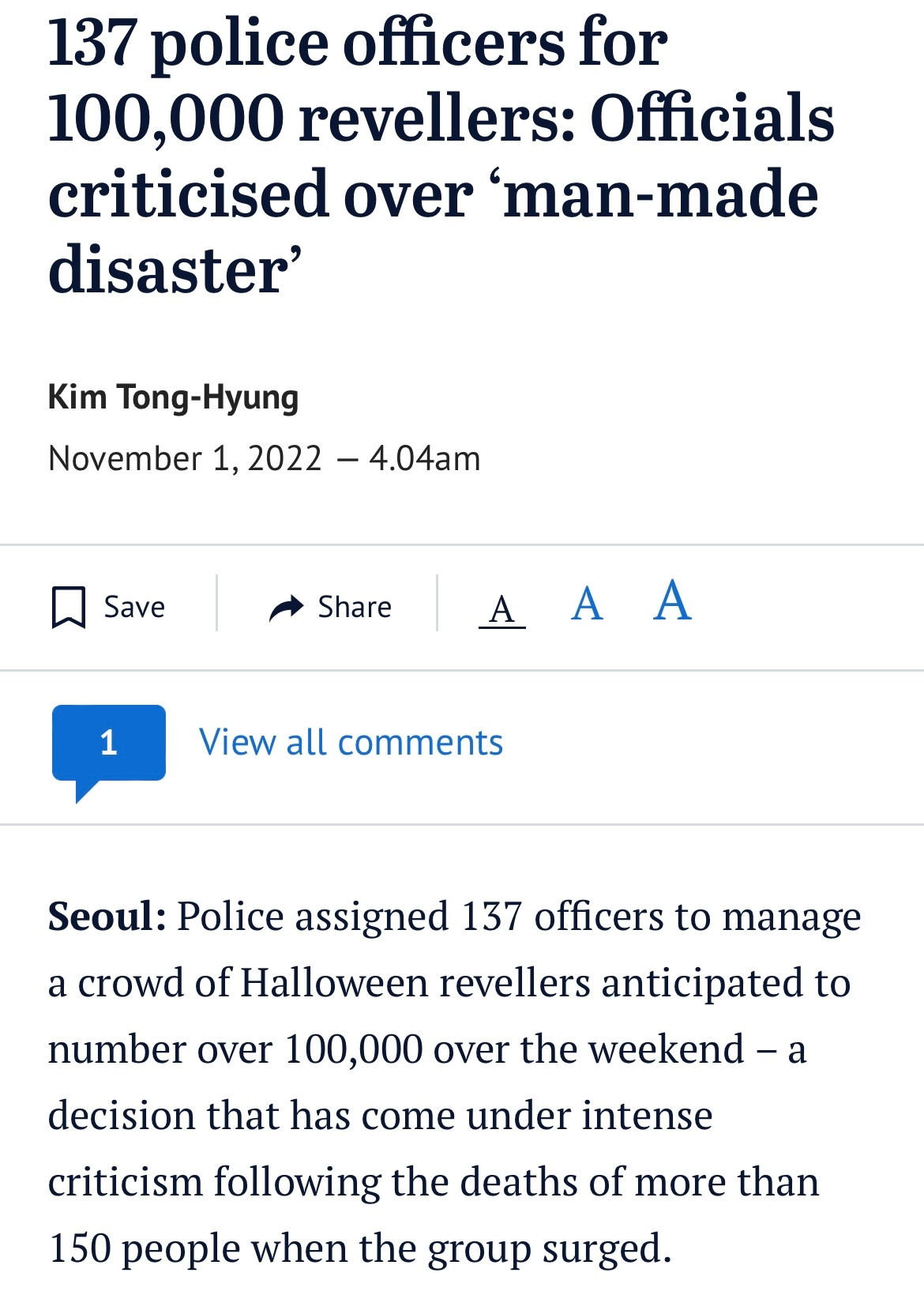 호주 뉴스에서도 10만 명이 운집할 것이라 예상되는 곳에 137명의 경찰 인력이 배치된 것을 두고 한국 정부는 비판과 책임을 면하기 어려울 것이라 전망된다고보도하고 있다.