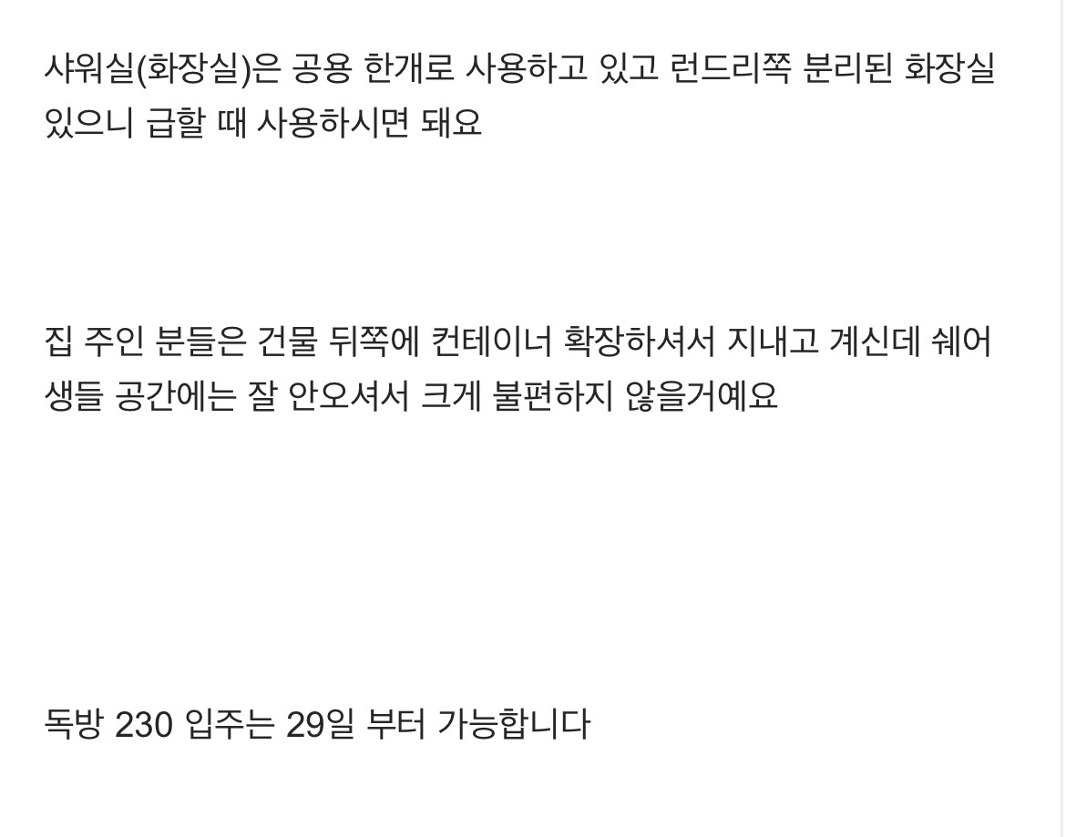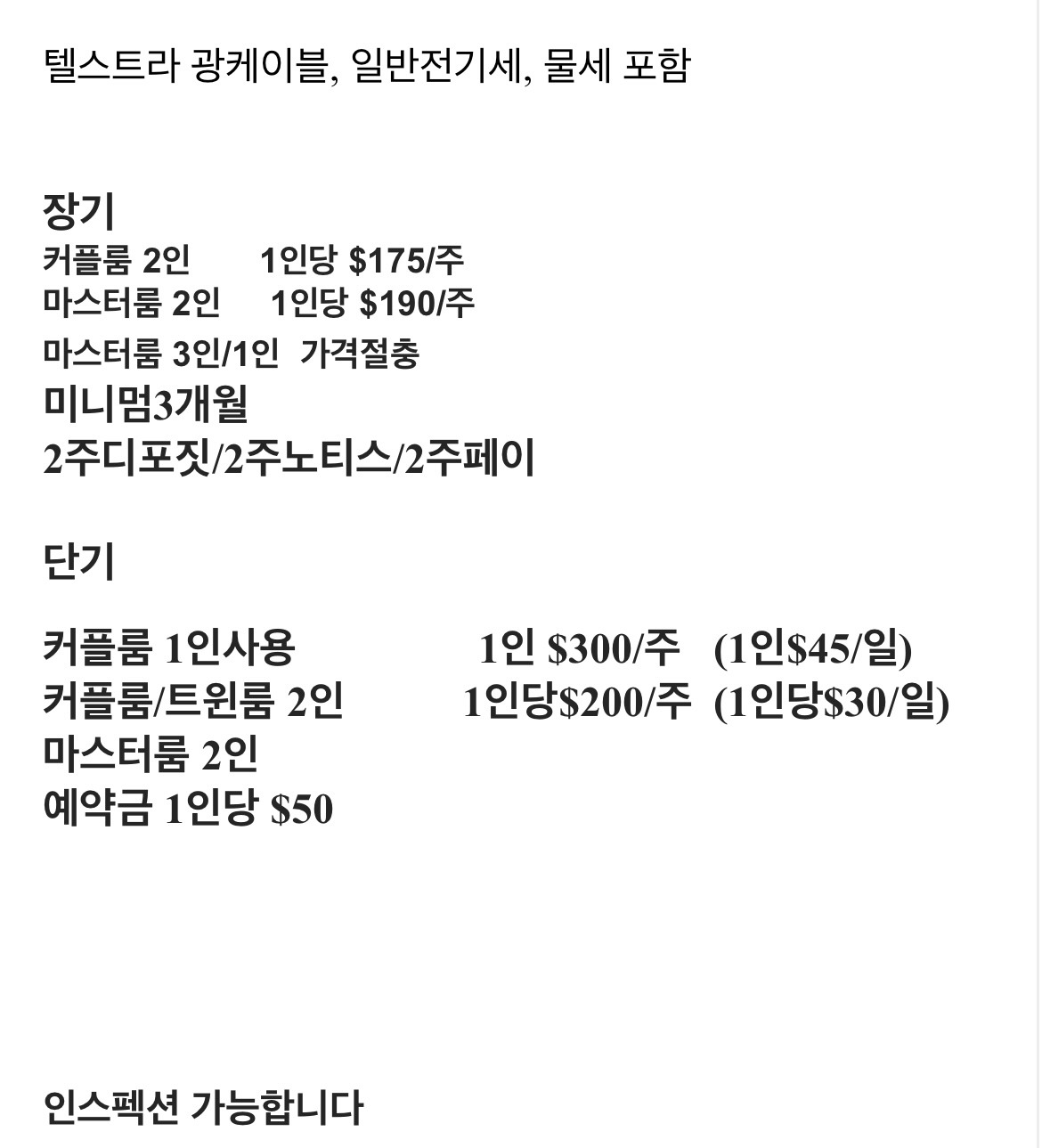 코로나이전 시티 초 중심 쉐어가격이 250~350불, 외각지역은 120~150불이었던 것을 감안하면 지금 방값은 정말 비싸다는 생각이 든다.