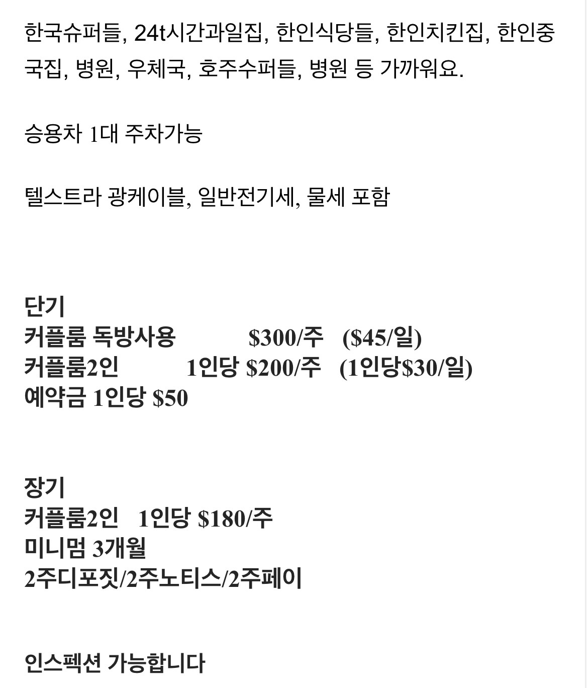 코로나 전에 워킹홀리데이를 왔던 동생과 지낼 때 둘이서 주에 150불(1인 75불)을 냈던 것을 생각하면