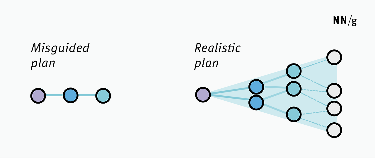각 목표를 달성하기 위해서는 어떠한 계획이 필요한가. 계획은 흔히 2년에서 분기에 마다 정하며, 시간이 지나 달성한 계획들을 측정하여, 보다 목표에 얼마나 다가갔는지 측정할 수 있다. 계획은 사용자 경험에서 알려진 문제를 해결하거나 새로운 아이디어나 기회를 탐색하거나 추가적인 사용자 리서치등이 있다. 분기마다 정한 계획과 목적을 달성하면 팀은 목표를 얼마나 달성했는지 비전에 대한 얼마나 가까워졌는지를 측정할 수 있다.