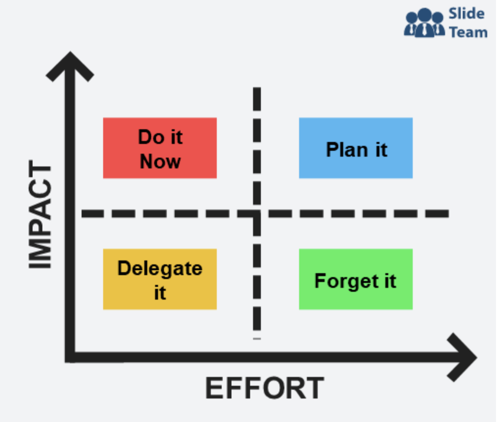 1. 사용자 경험에서 중점적으로 고려해야 할 분야 - 목표를 달성하기 위해 모든 요소에 집중할 수 없다. 그러므로 목표를 달성하기 위해 소모되는 비용과 임팩트를 고려햐여 우선순위를 정하자. Action Priority Matrix를 사용하면 중점적으로 고려해야 하는 목적과 계획을 알아볼 수 있다.