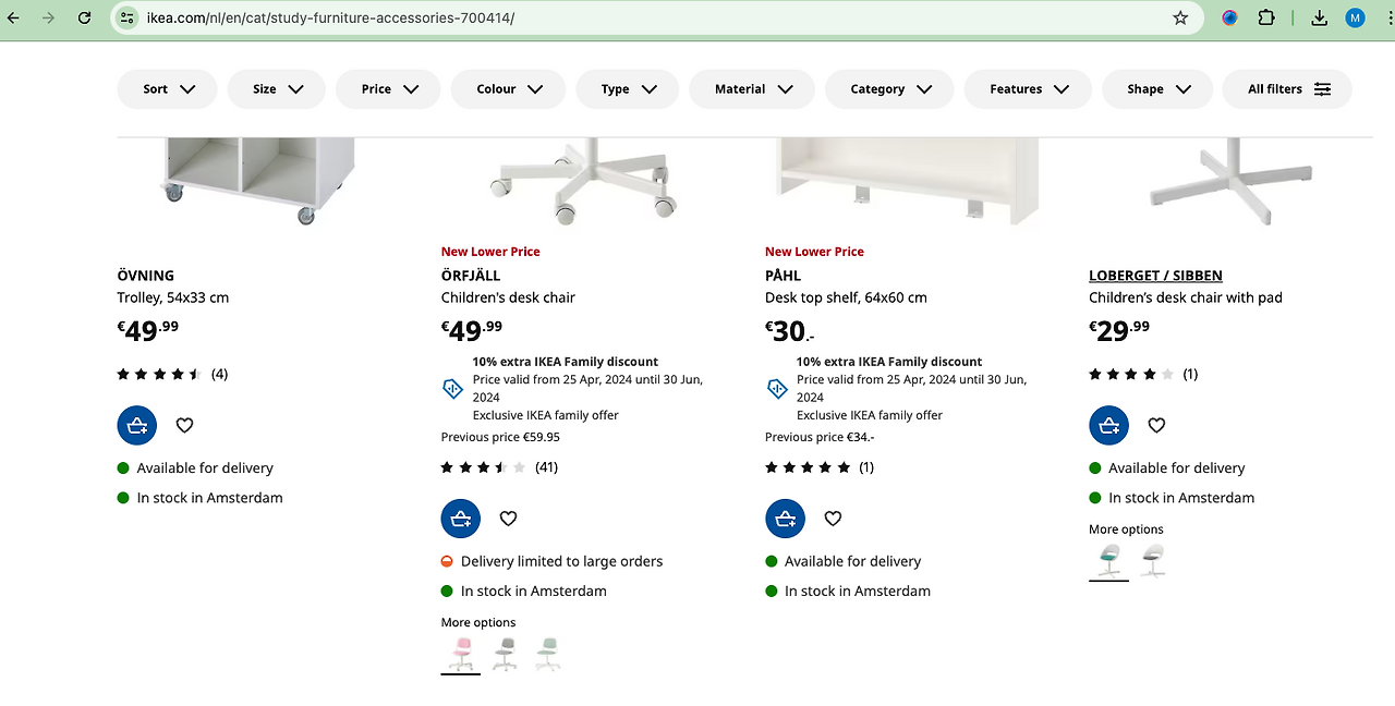 이케아는 상품 배송가능한 상황을 컬러 코드를 통해 명확하게 표현하고 있다.