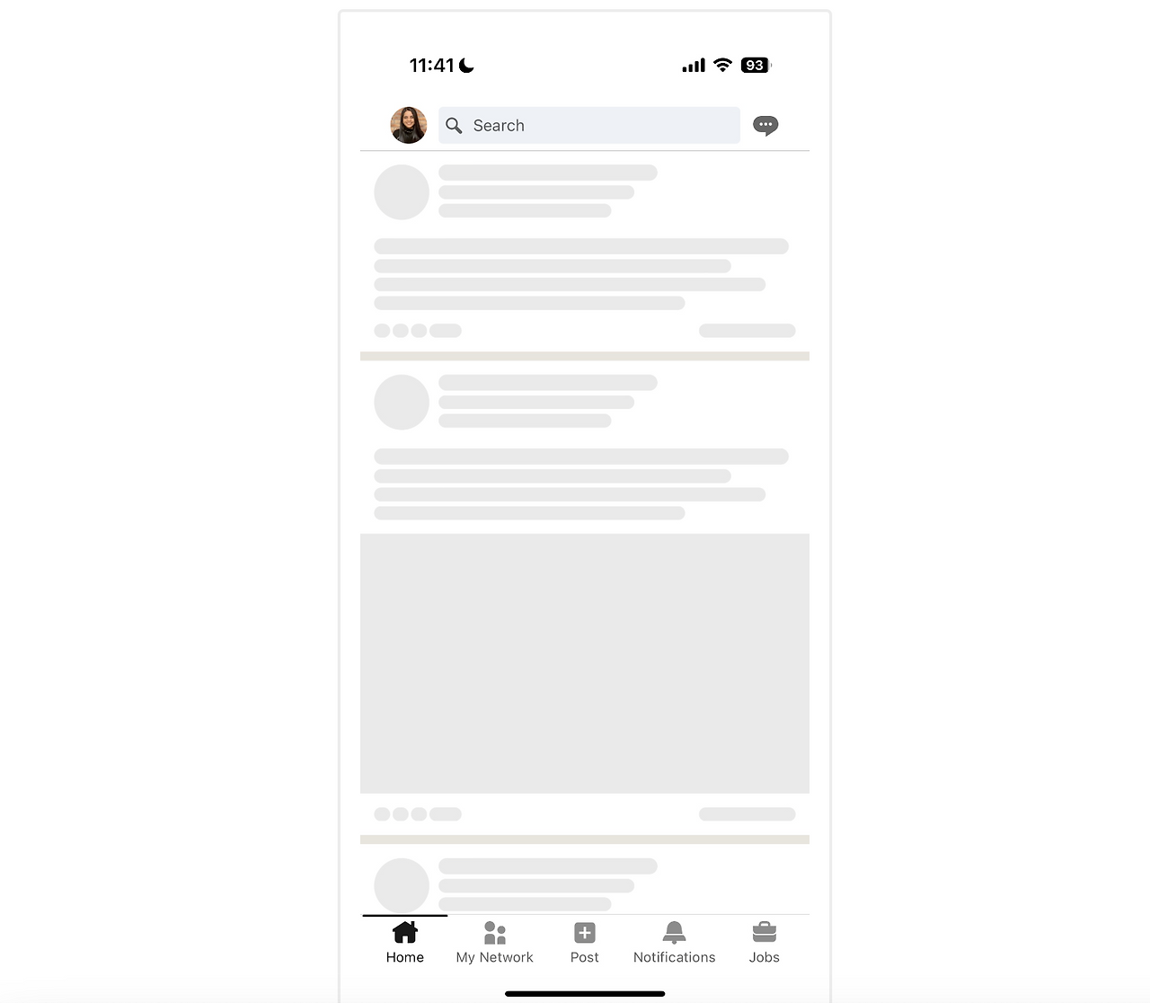 예로, 스켈레톤(Skeleton) 로딩 화면은 사용자에게 콘텐츠가 로딩되고 있다는 현재 상황을 보여준다.