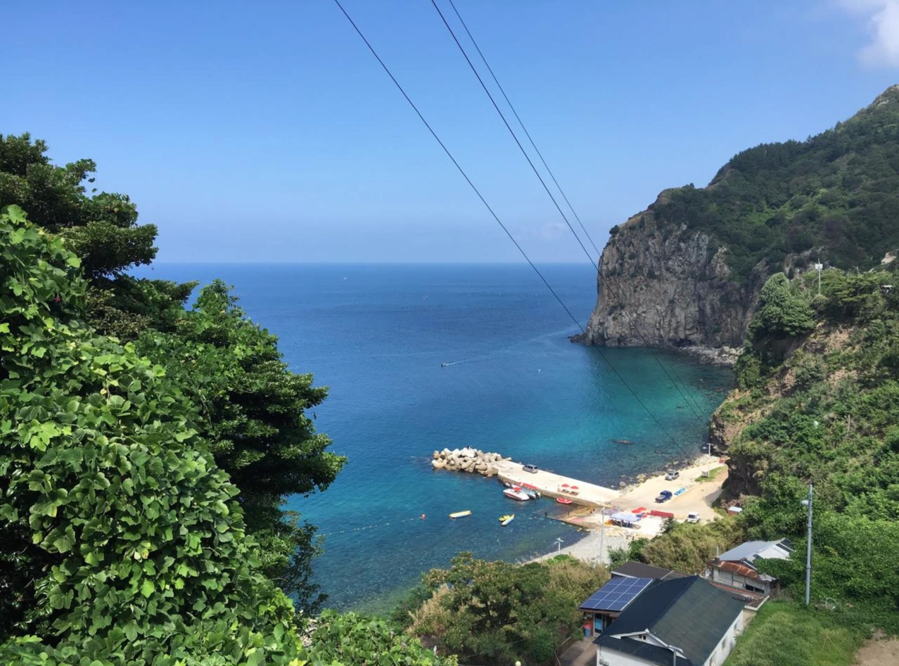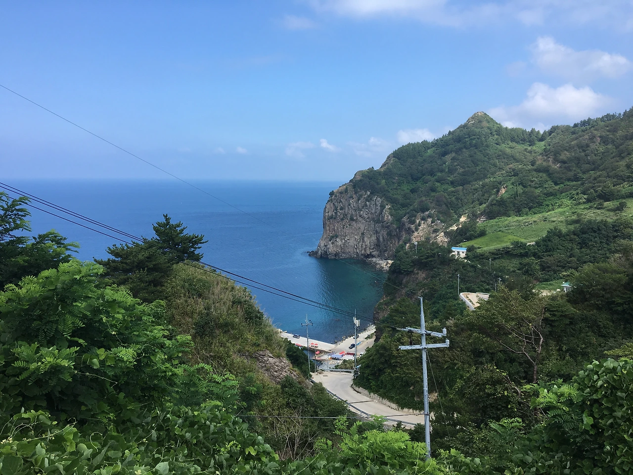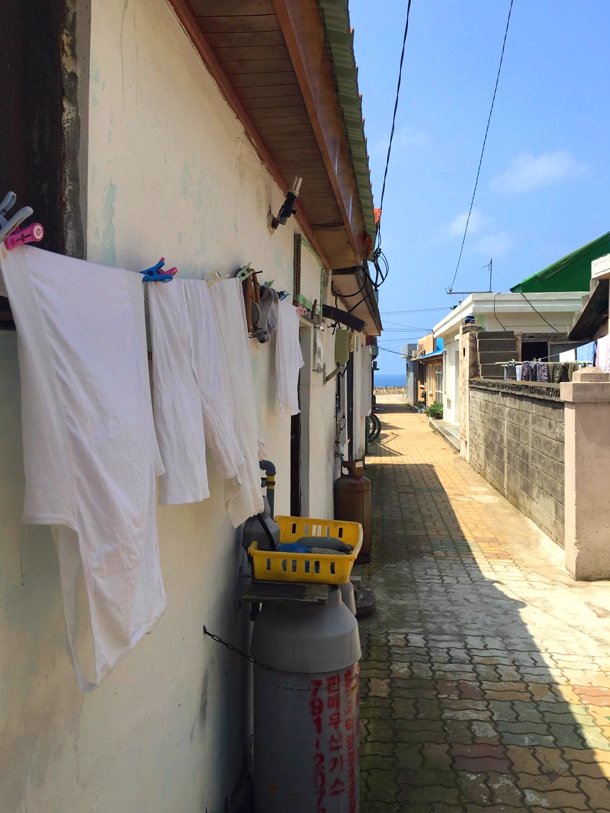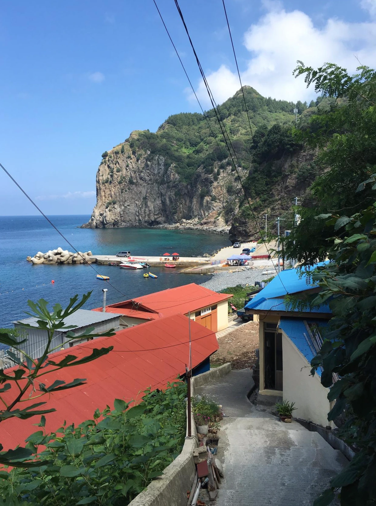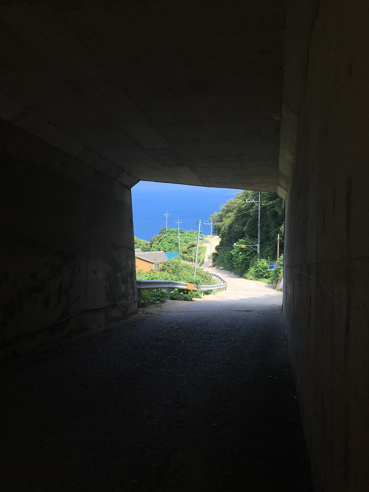 버스 정류장은 언덕배기에 걸쳐있었다. 이제부터 걷는 시간이다. 좁은 굴다리를 지나 바닷가로 이어진 길. 보따리를 들고 버스를 타러 가던 아저씨가 지름길을 알려주셨다. 내려갈수록 조금씩 드러나는 바다와 마을.