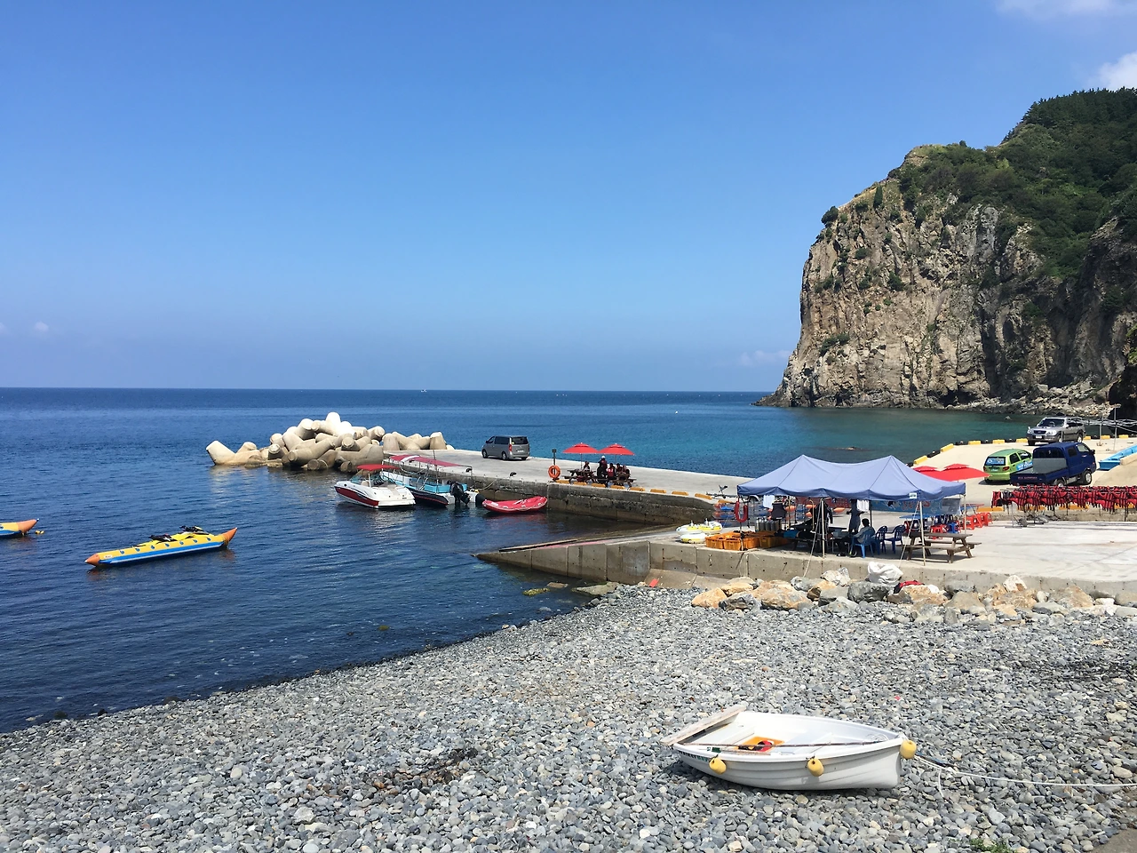 어떤 이들은 마을 앞바다에서 카약을 타고 있었다. 보는 눈은 다들 비슷하다고, 셈이 빠른 이들이 여행자를 붙잡을 만한 방법을 찾은 모양이다. 아무것도 없이 한적한 바다가 더 좋지만, 현지인의 생계를 책임지지 않을 나로서는 과하지 않길 바랄 뿐이다. 아담한 해변이 형형색색의 광고와 시설물에 시달리지는 않았으면.