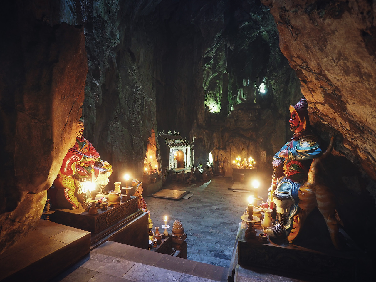 바다가 조금씩 깎아서 만든 구멍은 사람의 손길을 더해 신의 공간이 되었다. 여러 개의 동굴이 개미집처럼 오밀조밀하게 자리 잡고 있다. 그중에 해가 높게 떠오르면 천장에서 빛이 내리쬐는 동굴(Huyen Khong, 玄空)이 있다. 특별히 더 성스럽게 느껴지지 않았을까. 공들인 만큼 간절한 소원이 담겨있을 것 같다.