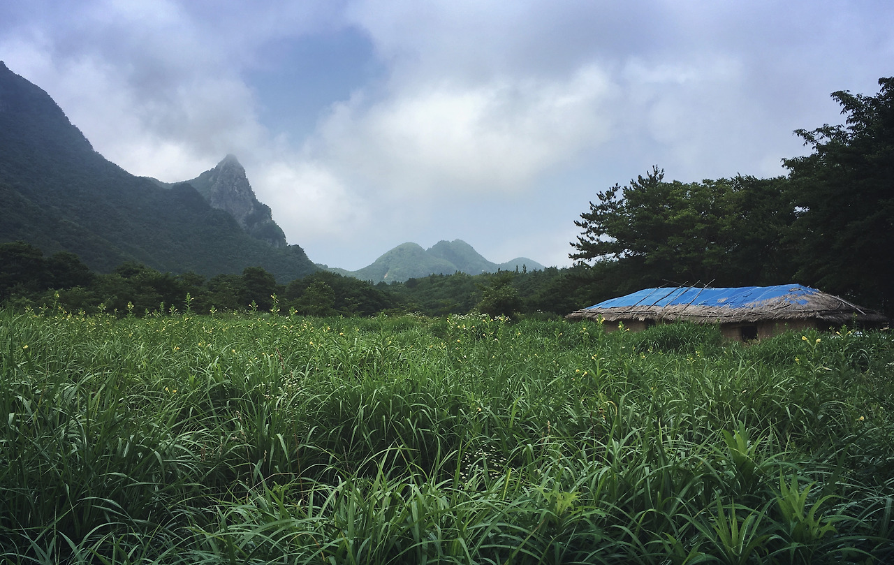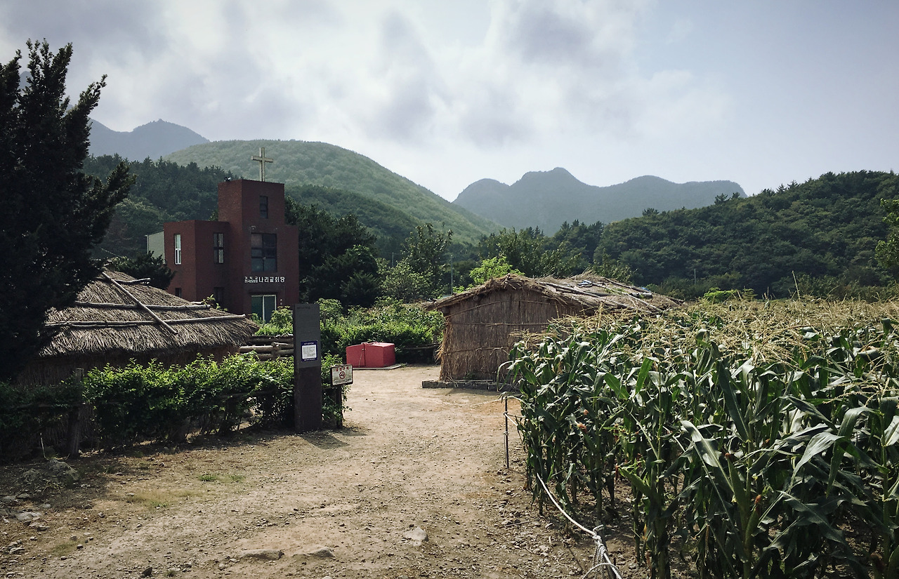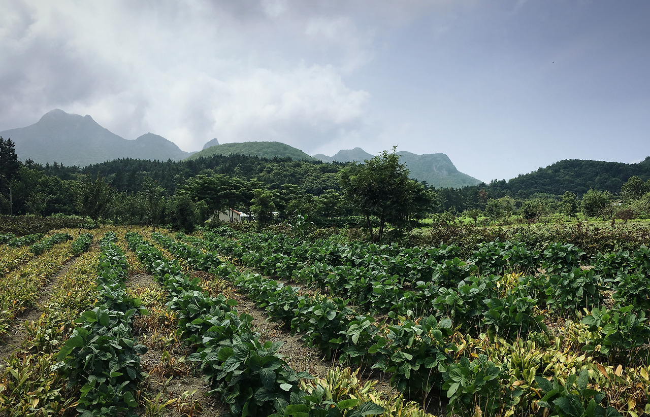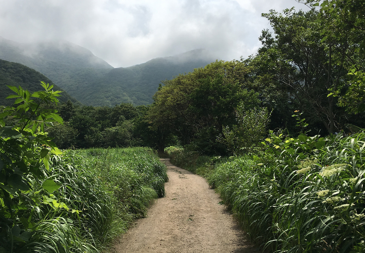 비스듬히 기울어진 안개 숲길은 판판하게 잘 닦인 길로 이어졌다. 빠르게 요동치는 구름 덕분에 주변 풍경이 시시각각 다르게 보인다. 적당히 구획을 나눈 밭, 몇 채의 집, 그리고 관광객을 상대하는 식당이 있는 작은 마을. 군데군데 열매를 맺은 농작물과 활짝 핀 꽃이 색을 더한다. 세상 평화로운 농촌 풍경이다.