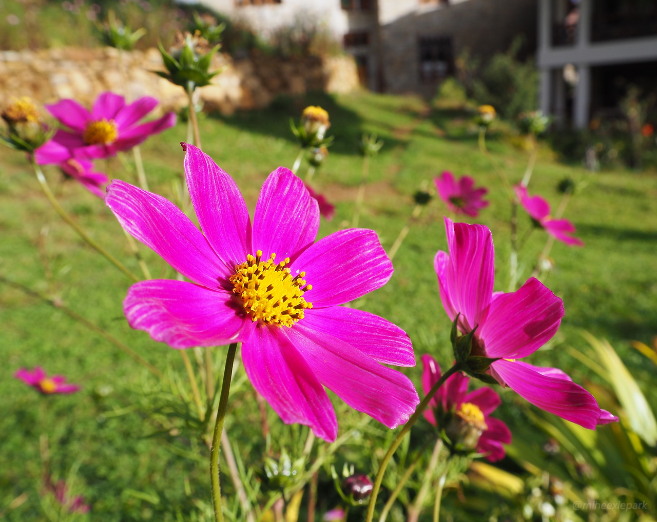 처음 보는 신기한 꽃의 이름을 물었다. 모른다는 짧은 대답. 꽃에는 관심이 별로 없는 것 같다. 고산지대에서 자라는 꽃이라고만 알고 있다고. 대신 국화(National Flower)인 히말라야의 푸른 양귀비꽃에 대해 알려주었다. 6-7,000미터에서 자라기 때문에 우리가 여행 중에 볼 확률은 제로다. 부탄 사람들도 쉽게 보지는 못했을 텐데, 누군가 목격한 파란빛이 너무 특별하고 신비해서 국화가 되었던 걸까. 그런데 아이러니하게도 요새 우리나라에서 보기 힘든 무궁화를 부탄의 거리에서 종종 볼 수 있었다. 부탄의 국화 대신 한국의 국화를 보는 게 어쩐지 웃프기도.