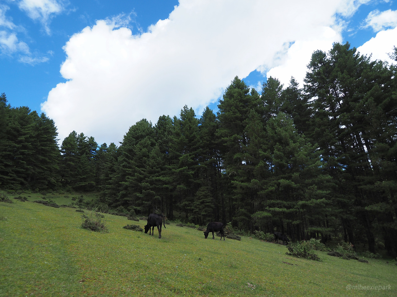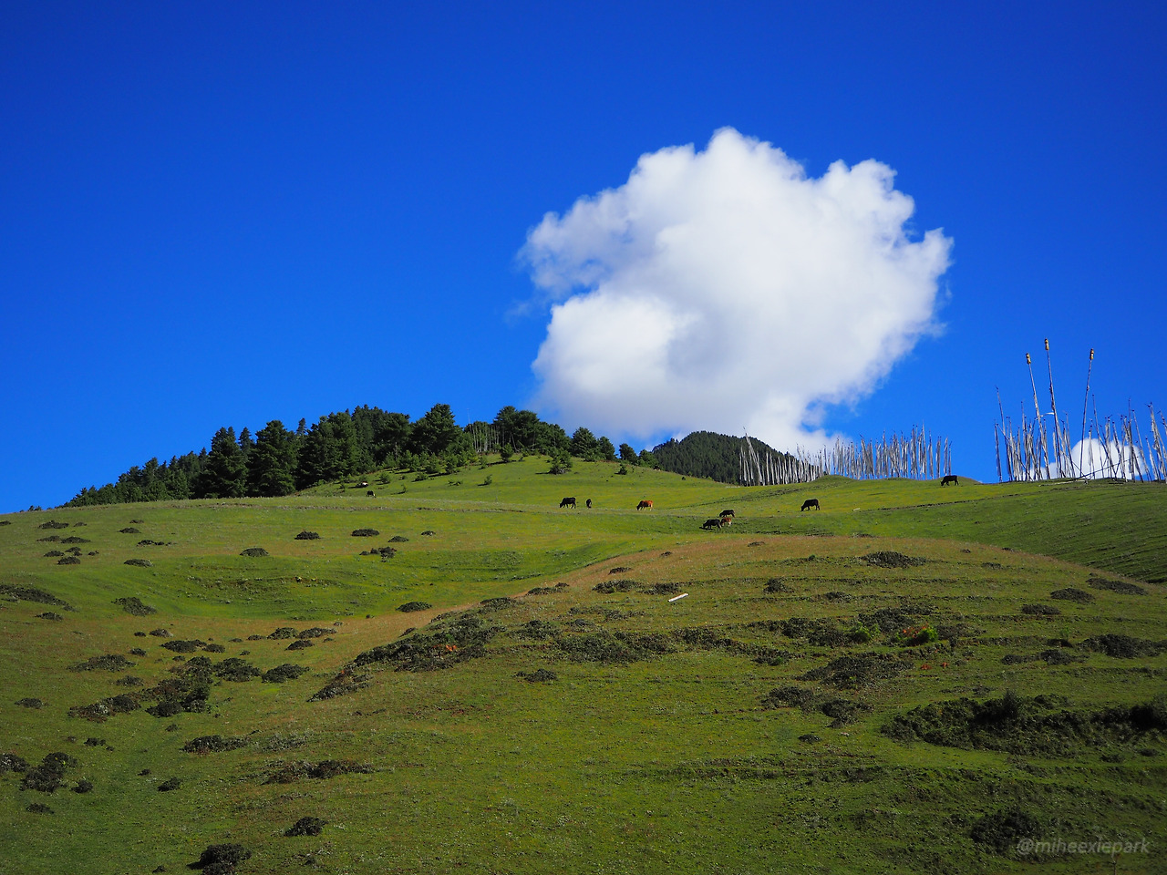 마음대로 먹으니 싸는 것도 자유롭다. 걷는 모든 길이 화장실이 된다. 풀밭에 떨어진 것들은 비료가 되겠지. 여태까지 봤던 여느 소들과 달리 말랐다고 느낄 만큼 날씬했지만, 엄청난 양의 배설물을 몸 밖으로 내보냈다. 하이킹하는 이들에게는 터지지 않는 지뢰밭이다. 주변 풍경에 정신이 팔린 사이에 결국 한 번은 즈려밟고 말았다. 도마는 깔깔 웃으며 그 대신 운이 좋을 거라고 말했다. 돌아가서 복권을 사겠다고 대답하면서 부탄에도 복권이 있냐고 물었더니 한 달에 한번 추첨한다고.