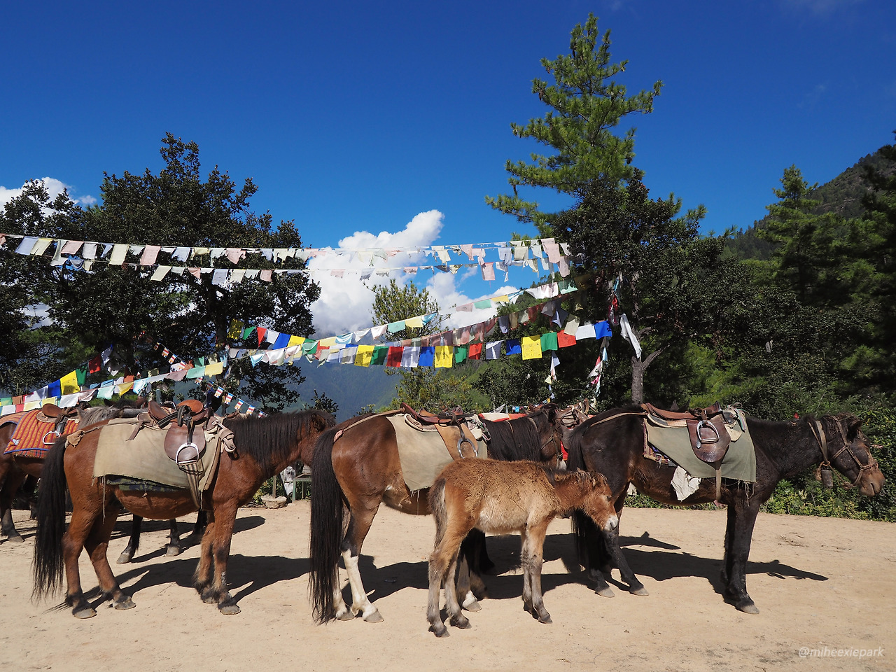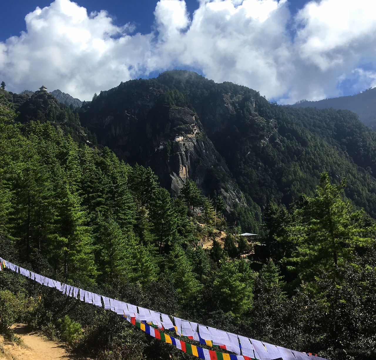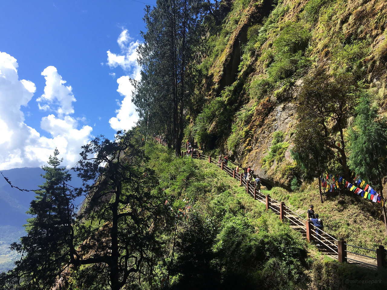 두통도 없고, 날씨가 좋아서 산길도 보송보송하니 이만하면 온 우주가 최선을 다해 도와준 셈이다. 포기하지 않고 열심히 올라가면 된다. 부탄을 찾는 여행자의 연령대가 높은 편이라 말에 탄 사람들의 숫자가 제법 많았다. 초반부는 말과 사람이 뒤섞여 간다. 말과 함께 오르는 코스는 또 하나의 진풍경이 있었다. 등산로가 지뢰밭이다. 관광뿐만 아니라 사원에 필요한 물자를 운반하는 데도 말을 쓰기 때문에 어쨌거나 말똥 밭이 될 수밖에 없다. 우리는 난생처음 말똥 냄새가 엄청 다양하다는 것과, 오래되지 않은 것의 냄새는 훨씬 더 강력하다는 것을 깨닫게 되었다.