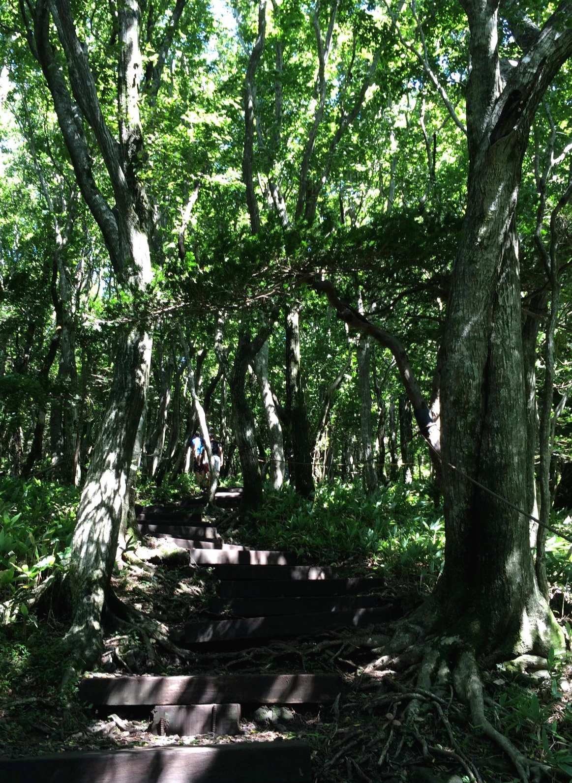 마냥 어승생악을 독차지할 수는 없고, 정오까지 한참이나 남았다. 어승생악에서 맛본 경치가 너무 좋았고, 생각보다 수월했던 등산로에 힘이 났다. 겁이 많고 소심한 나답게 계산기를 두들겨보고서는, 어리목탐방로에 들어섰다. 그새 익숙해진 고사리과 식물들. 저들끼리 어깨를 맞댄 채 숲을 채우고 있다. 싱싱하게 잘 자란 나무들이 그늘 우산을 씌워주니 한여름의 타는 듯한 더위도 내 몸에 닿지 않았다. 어두운 수풀 사이의 경사로를 따라 한참을 올라갔다. 언제든 힘이 들면 그만두면 될 일, 숲 마저 신선한 공기로 나를 돕고 있으니 아직 괜찮다.