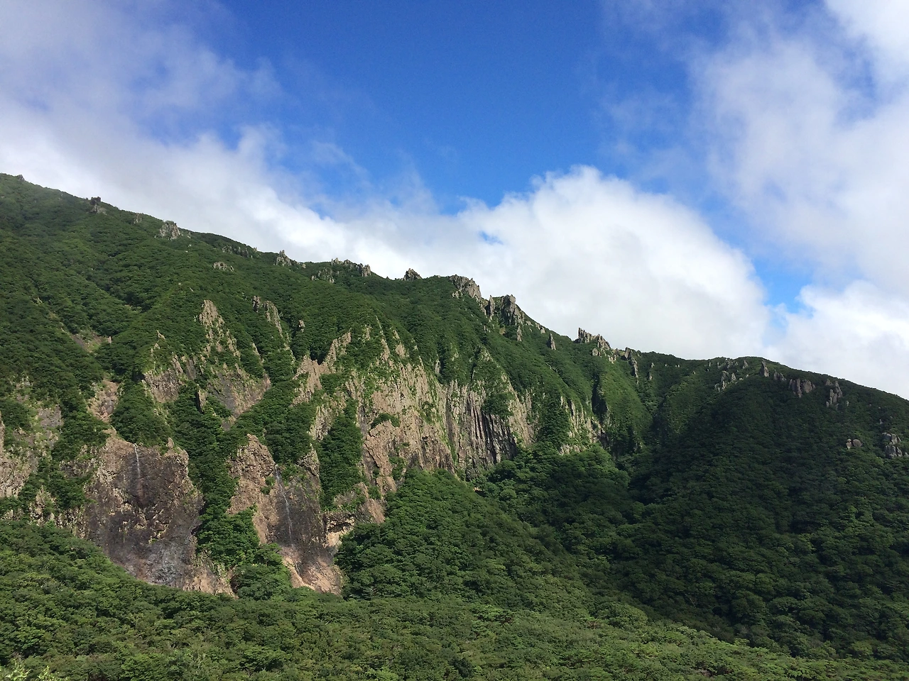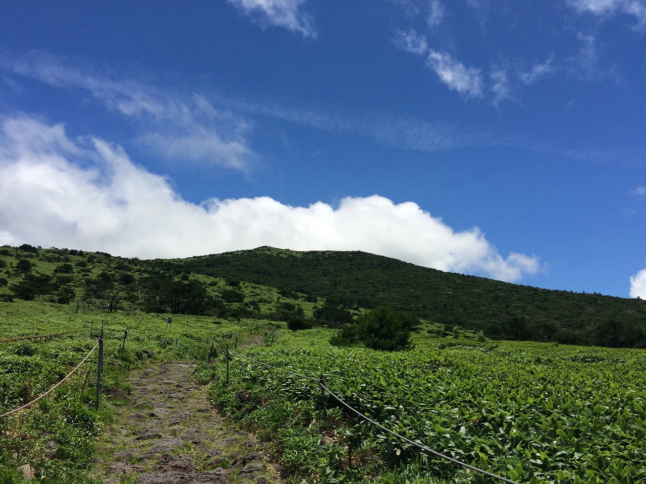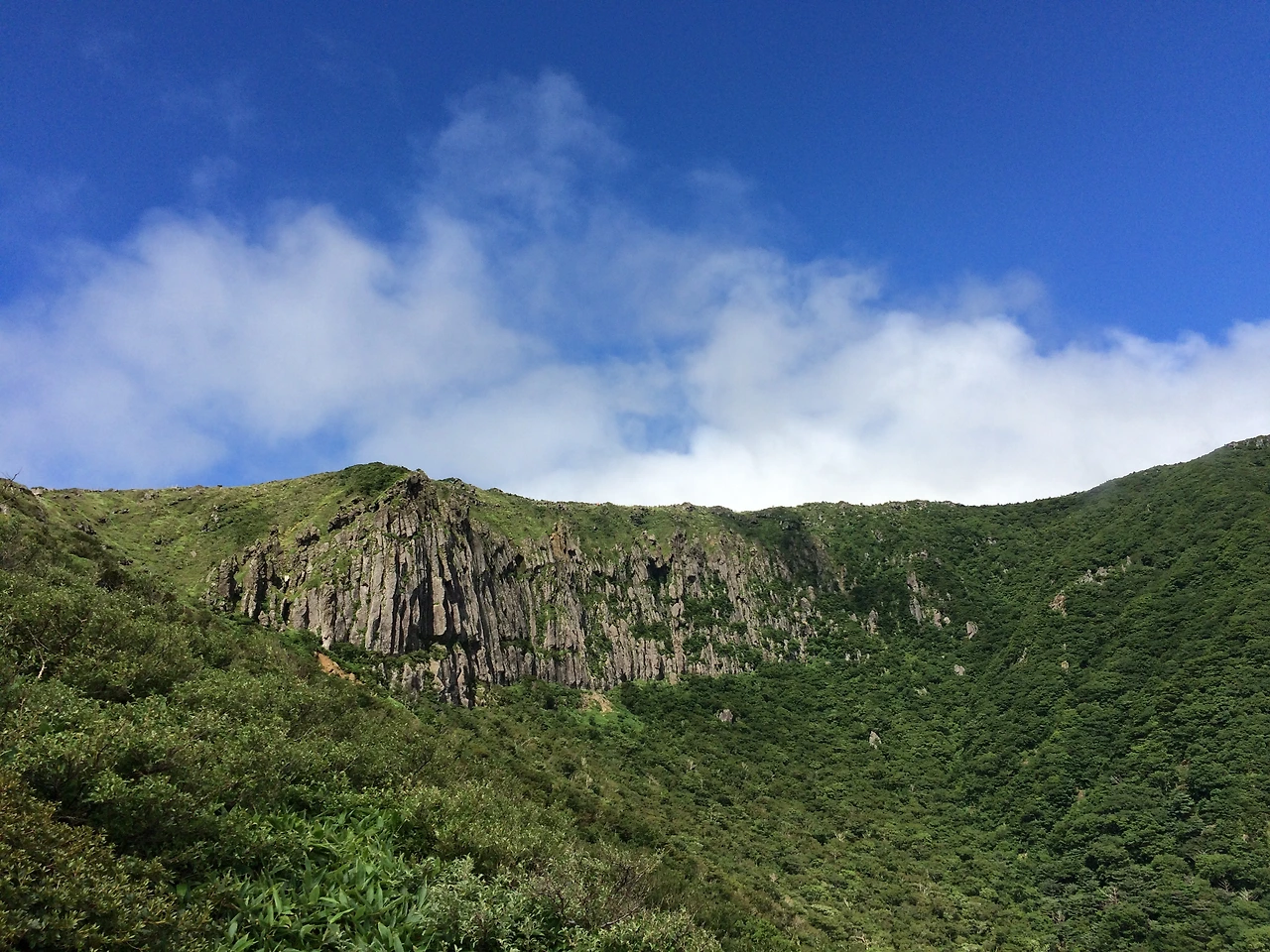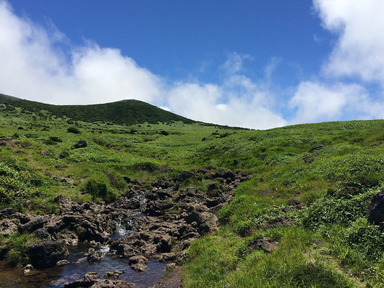 바람에 맞춰 들썩이는 모자를 붙잡은 채 등산로를 걷는다. 완전히 다른 세상에 와 있는 것만 같다. 이렇게 생기 있고 따뜻한 초록이 있을까. 백록담의 옆모습이 보여서 또 만세. 어느새 구름에 가려졌지만, 얼굴을 비춰준 것만으로도 고맙다.