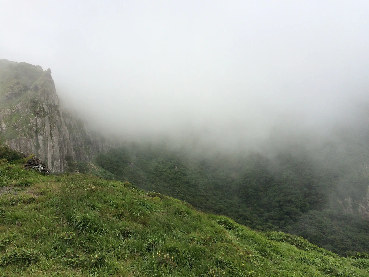 두 다리 뻗고 드러눕는 윗세오름에는 안개가 몰려들었다. 컵라면을 먹고 나니 완벽하게 전설의 고향이다. 신선이 사는 마을에 왔다 해도 될 것 같다. 날씨 변화가 늘 심하다는 걸 보면, 그다지 사람을 반기는 곳은 아닌가 보다. 희뿌연 안개에 취해 같은 곳을 빙빙 돌지 않도록 주의하라고.