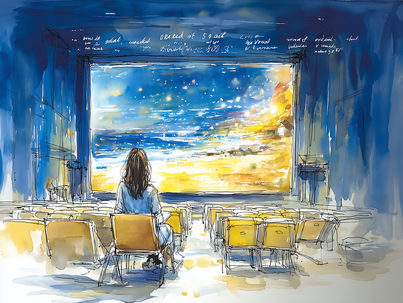 며칠 뒤 우연히 어떤 음악이 귀에 꽂혔다. 영화음악이었다. 그러니까 감수성이 지금처럼 납작해지기 전에, 좋아했을 법한 그런 음악. 극장에 한 번 더 가보기로 했다. 며칠 후면 막을 내릴 것 같아서 되는 대로 빨리. 몇 년만의 조조다. 이번 영화관은 연휴라 그런지 아침부터 사람이 제법 많았지만 적당히 생기 있고 쾌적한 분위기였다. 모처럼 키오스크 앞에 섰는데 역시는 역시. 아직도 팝콘 사이즈 전략은 유효한가 보다. 스몰과 라지 사이에서 천원을 아꼈다. 이런 게 도파민인가, 갑자기 기분이 좋아질 게 뭐람.