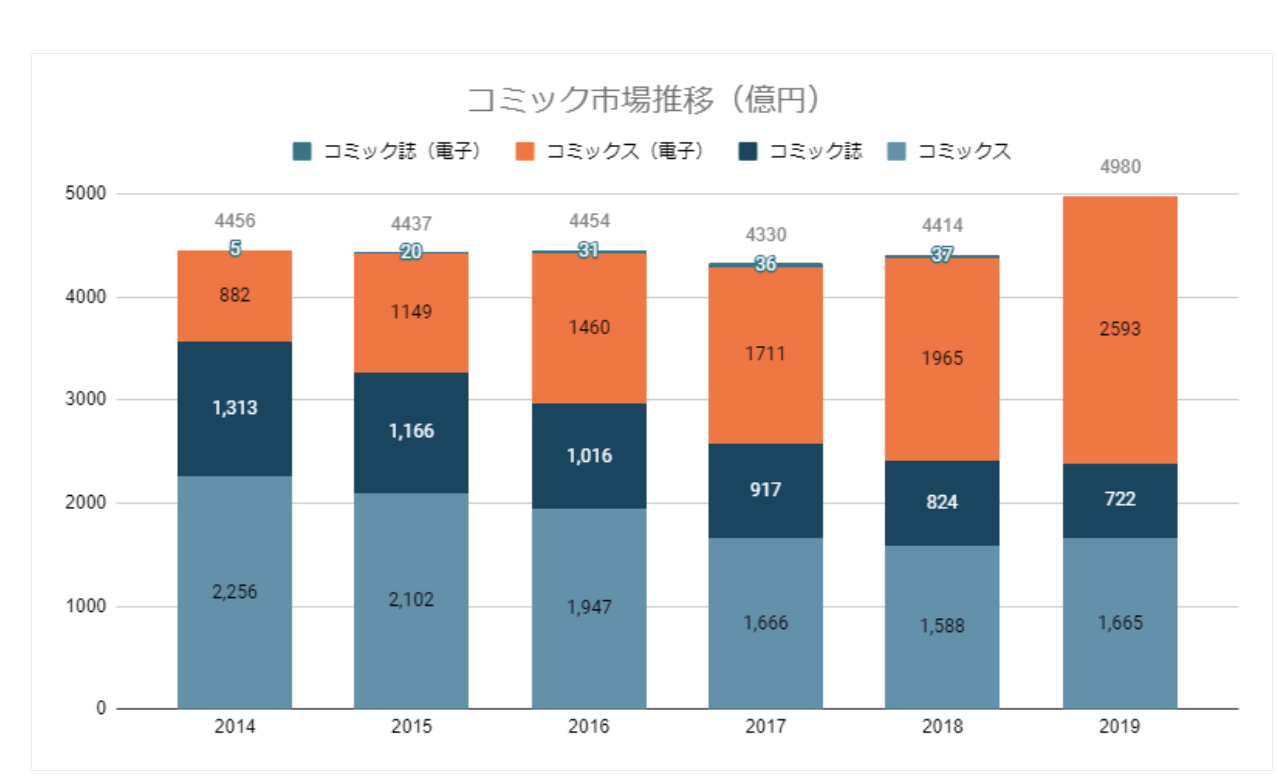 일본의 만화 시장은 약 4조 원대 규모이다 (출판 과학연구소 조사에 따르면, 2019년 4980억 엔). 소설 시장 전체 통계는 아직 없지만 연간 발행부수 등으로 역산해서 추정했을 때 약 1조 원 규모로 알려져 있다. 소설 시장만 놓고 본다면 대형 IT 기업이 뛰어들기에는 시장 사이즈가 너무 작다. (웹소설 시장의 신규 플레이어는 대개 중소 사업자들로 한정됨)