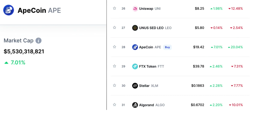 --> Ape Coin 22년 3월 출시. 코인 시가 총액 약 7조원 (21년 4월 말 기준)