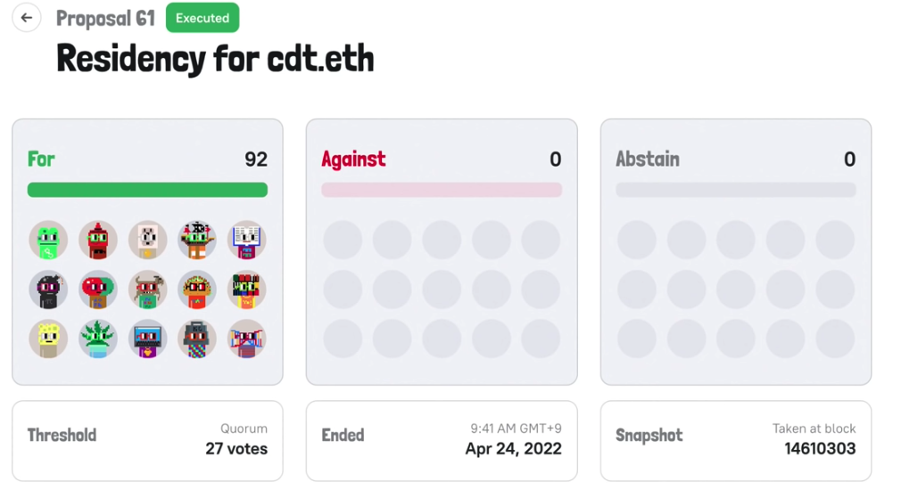 - 자금의 사용은 NFT 홀더들의 익명 투표를 통해 결정함.