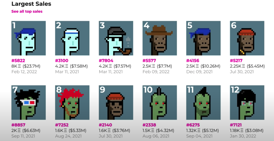 - 현재 전세계에서 가장 높은 평가를 받는 NFT