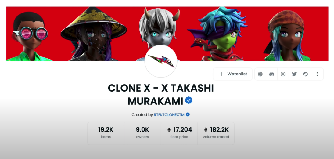 - 일본의 유명아티스트 무라카미 타카시와 콜라보로 출시한 3D풍 PFP Clone-X가 대성공을 거두고, 나이키