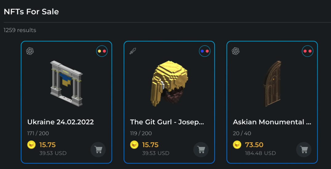 - 개임 내 개별 아이템을 다양한 크리에이터가 참여하여 NFT로 판매할 수 있음