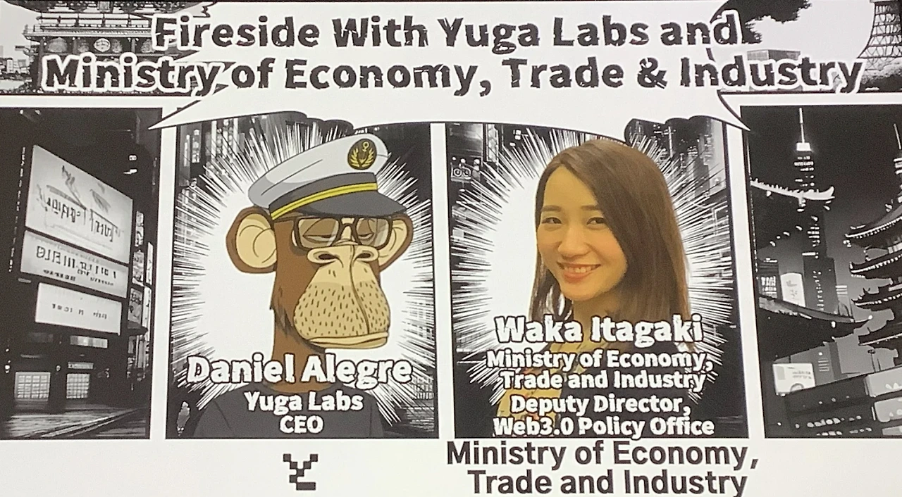 BAYC (Bored Ape Yacht Club: 지루한 원숭이들의 요트클럽)로 잘 알려진 유가랩스의 신임 CEO와 일본 경제산업성 실무자의 만남은 금번 WebX 행사에서 주목받는 세션 중 하나였습니다. Web3 업계의 최고 블루칩 기업과 가장 보수적인 정부 기관이 한 무대에 오르는 것만으로도 화제가 되기 충분했으니까요.